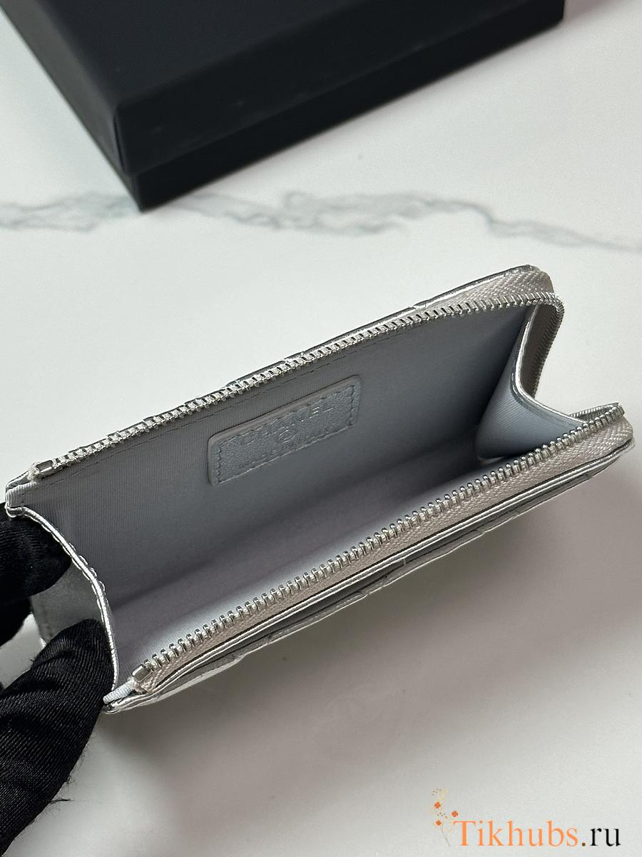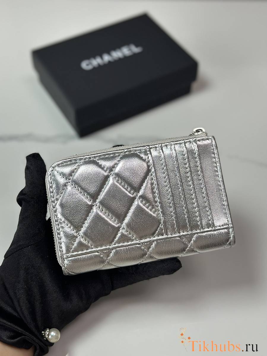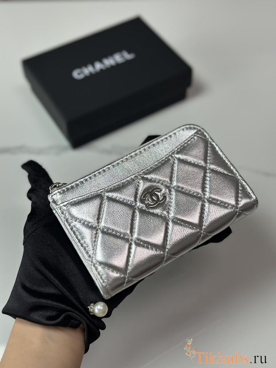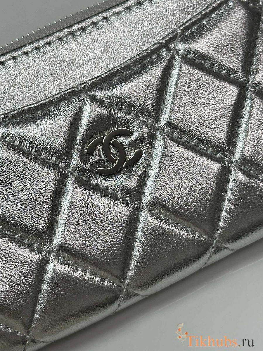 Chanel Card Holder Lambskin Silver 12x7.5x2.5cm