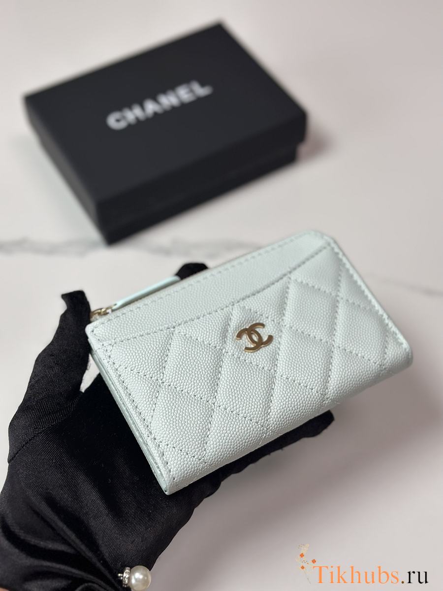 Chanel Card Holder Light Green Caviar Gold 12x7.5x2.5cm