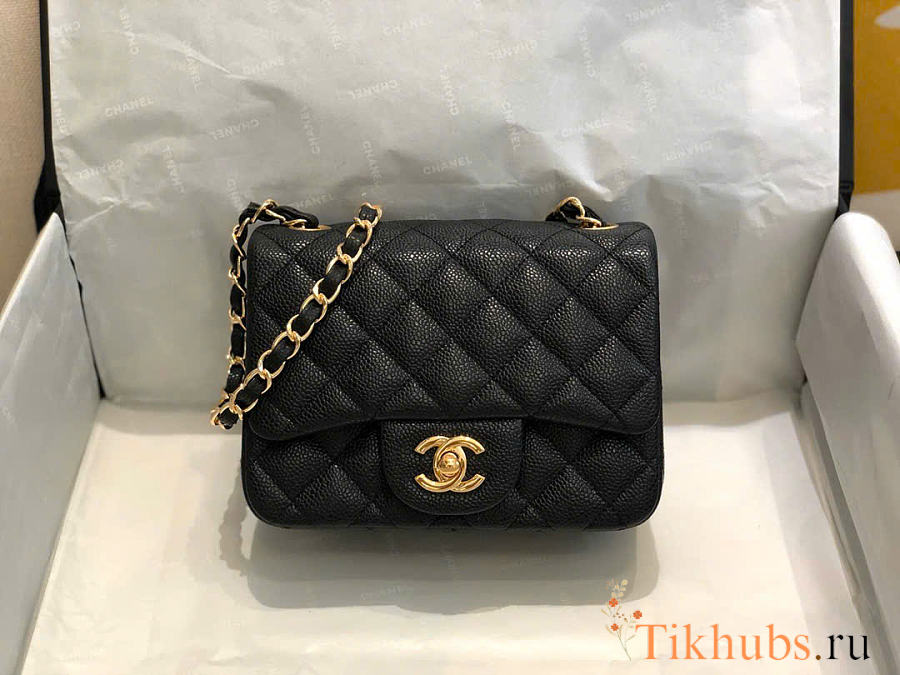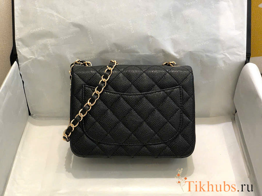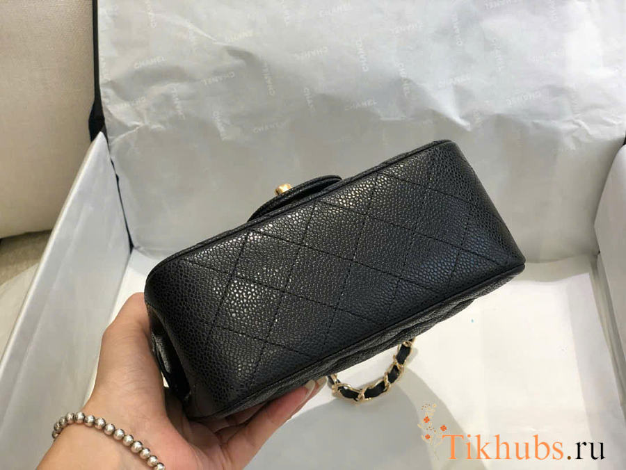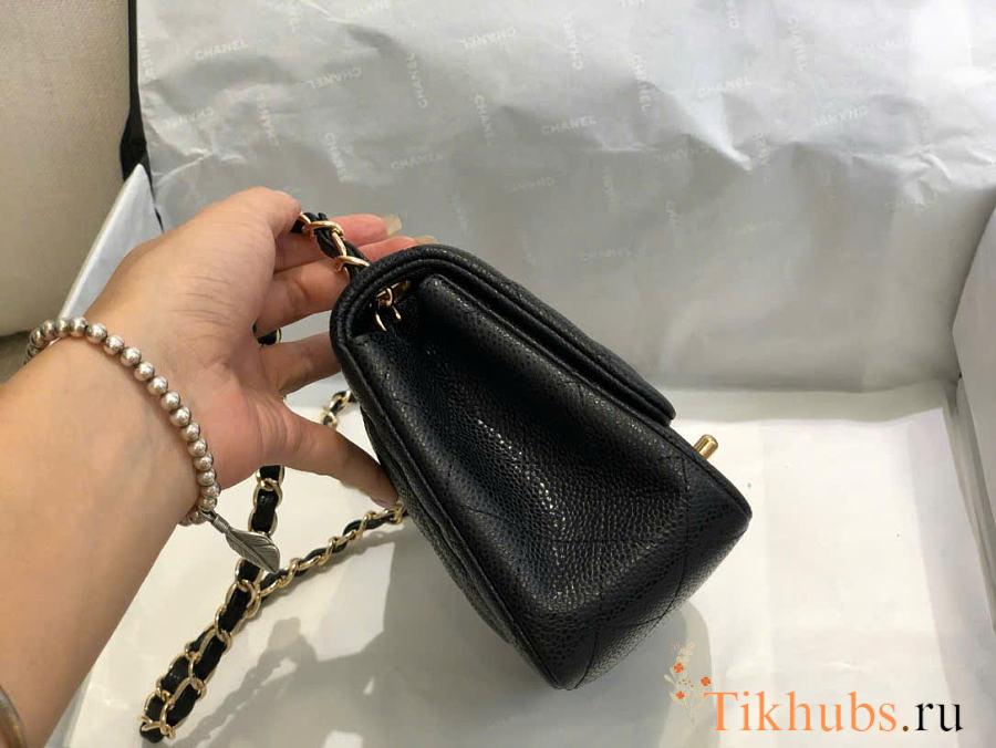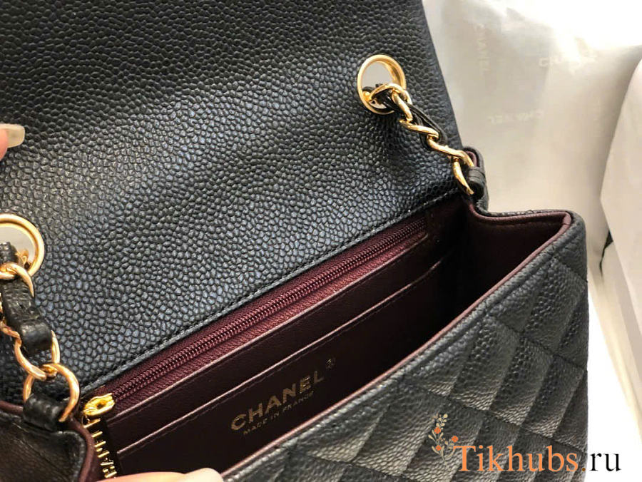 Chanel caviar Lambskin Leather Flap Bag black gold 17cm