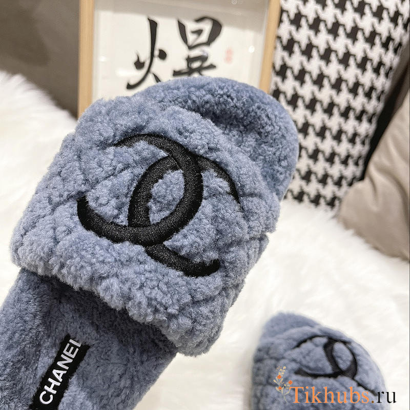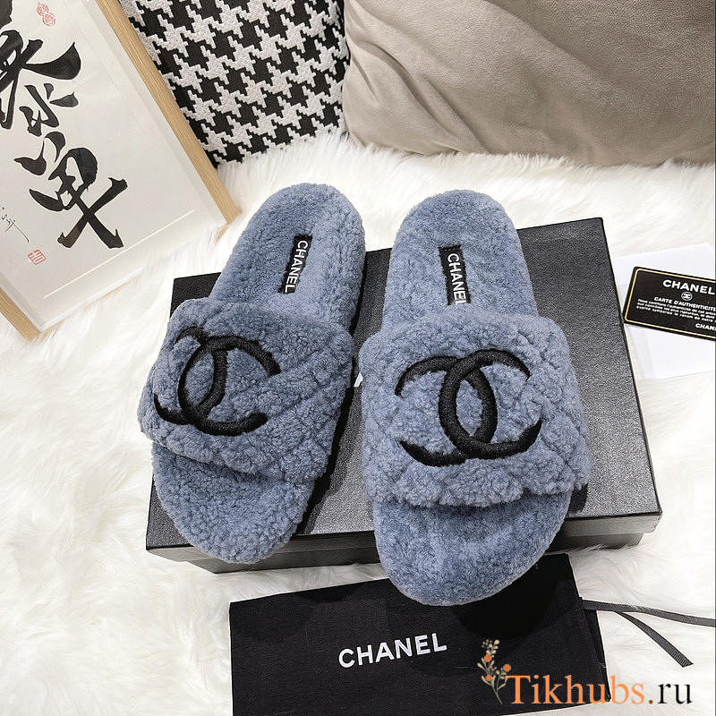 Chanel CC Fur Slides Blue