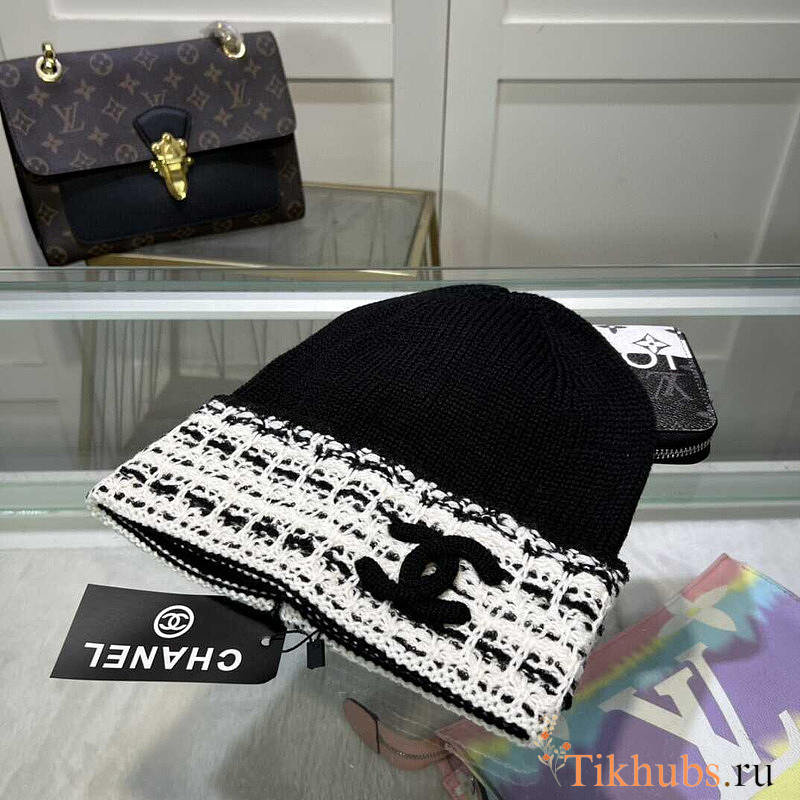 Chanel CC Logo Knitted Beanie Black