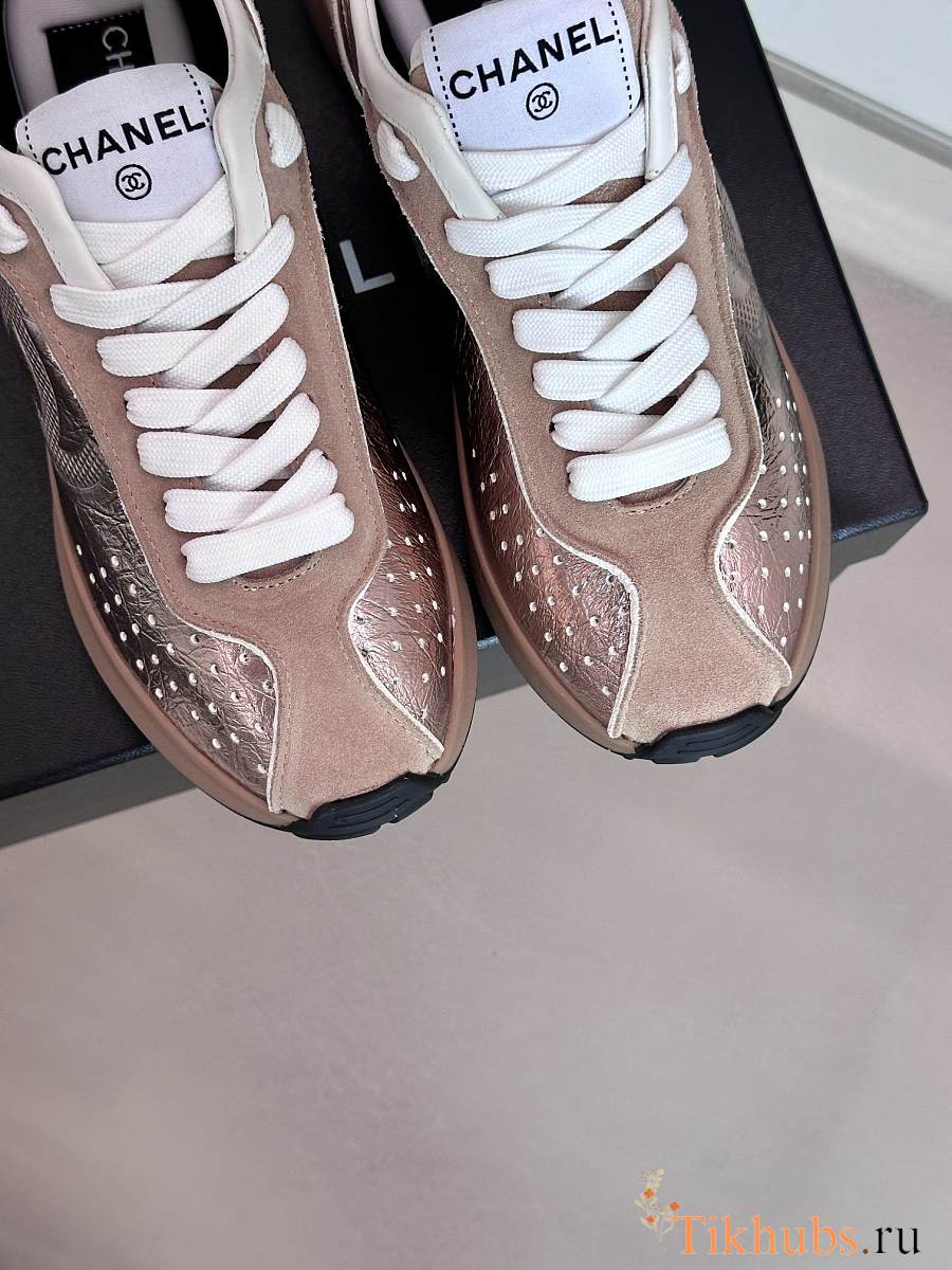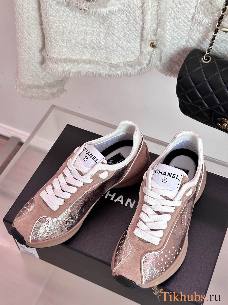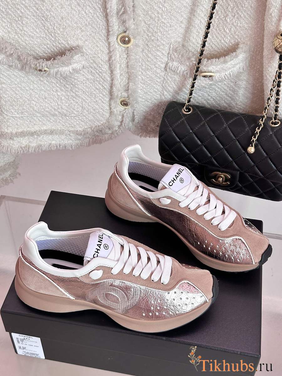 Chanel CC Logo Metallic Pink Sneakers