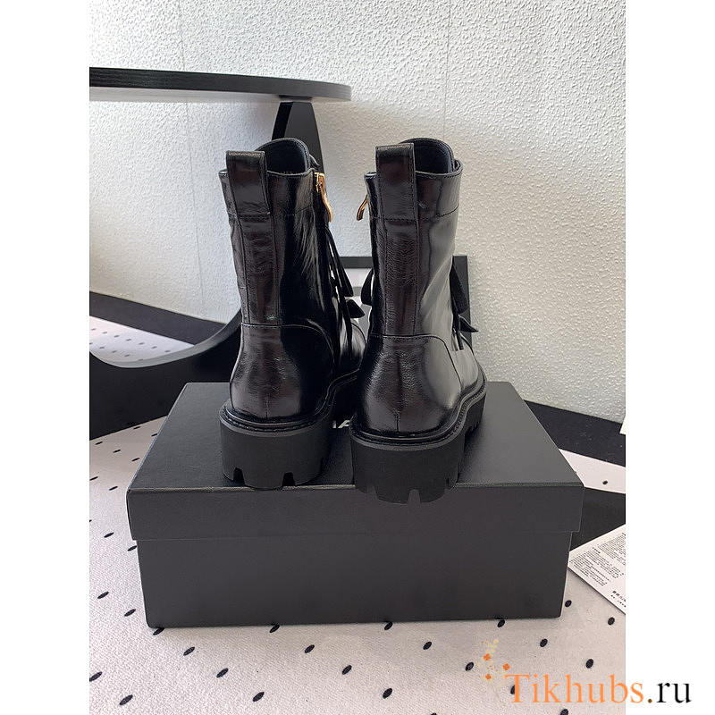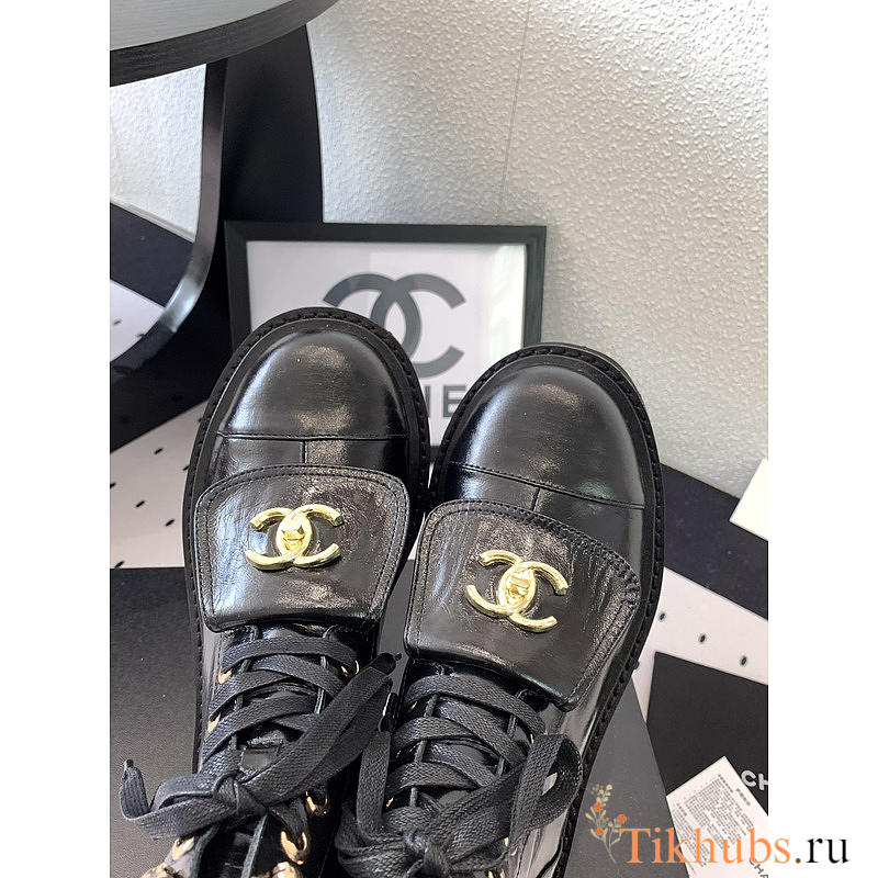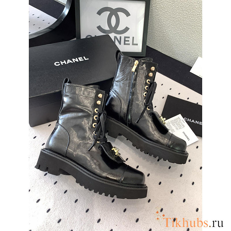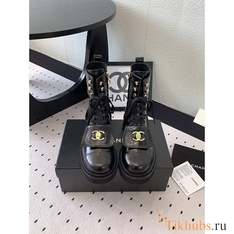 Chanel CC Short Boots Gold Logo Print Lambskin Black