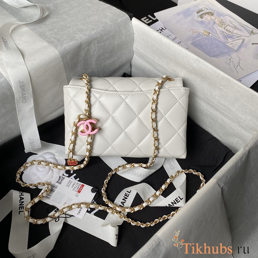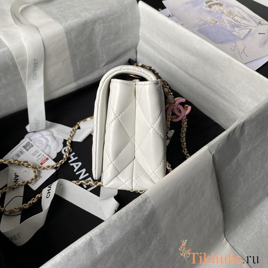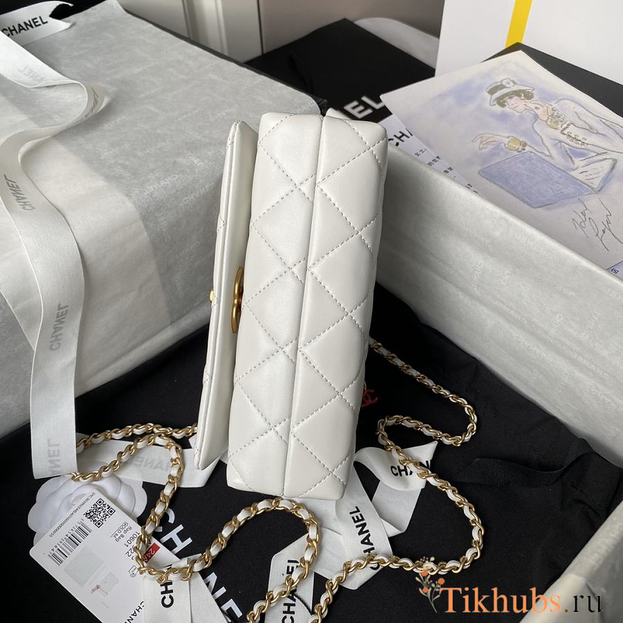Chanel Classic Flap Bag White Lambskin 22x14x8.5cm
