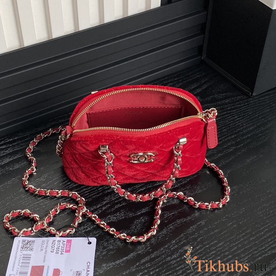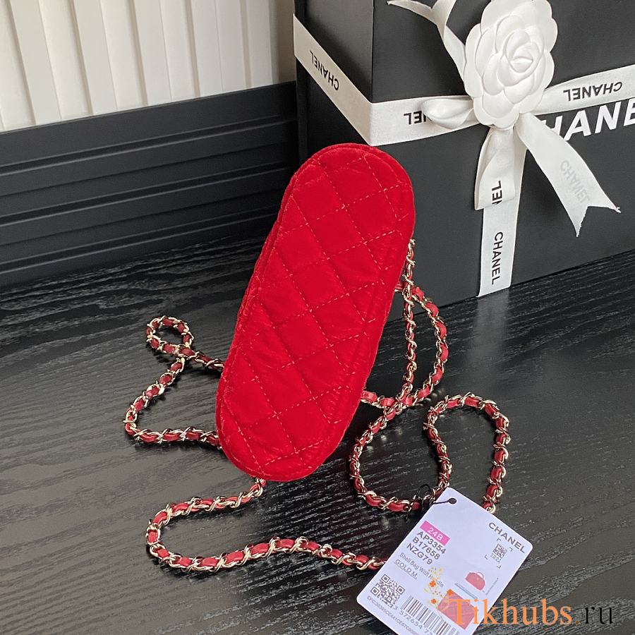 Chanel Clutch Strap Red Velvet Bag 16x11x5.5cm