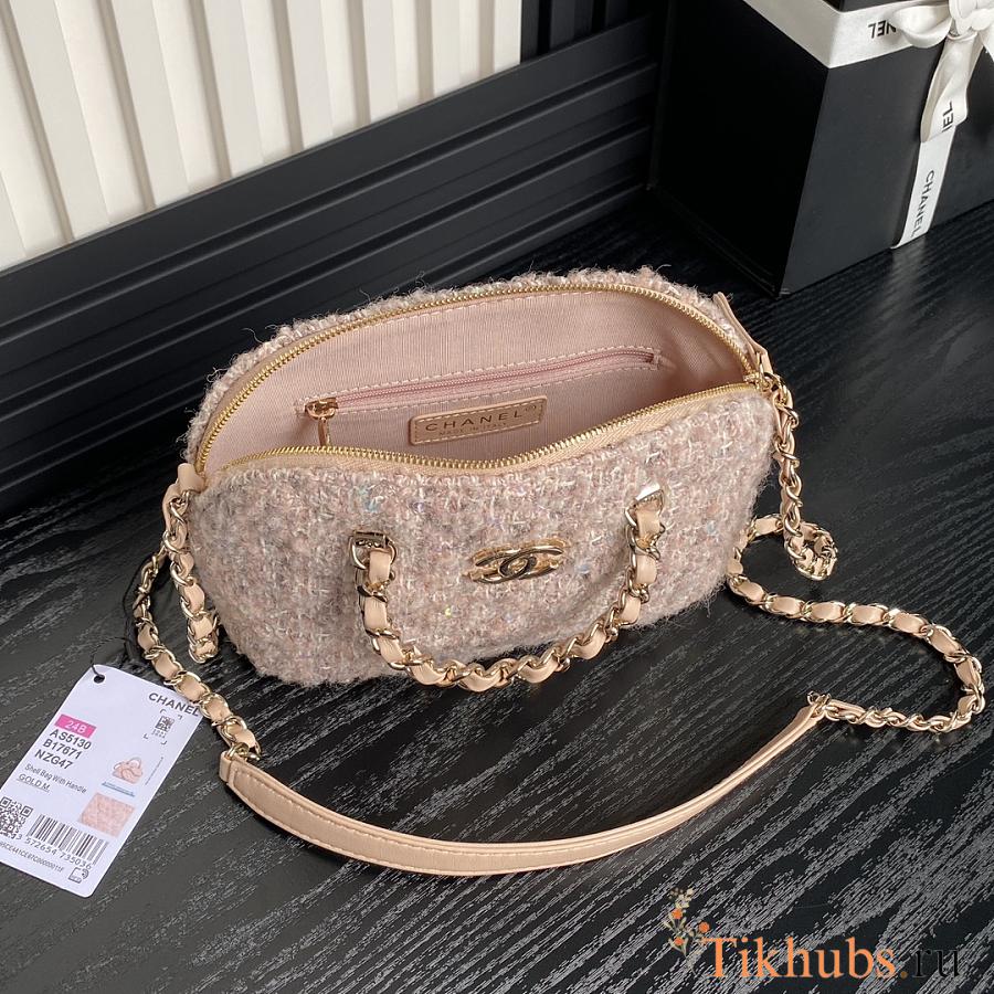 Chanel Clutch Strap Tweed Pink Bag 20x15x6cm