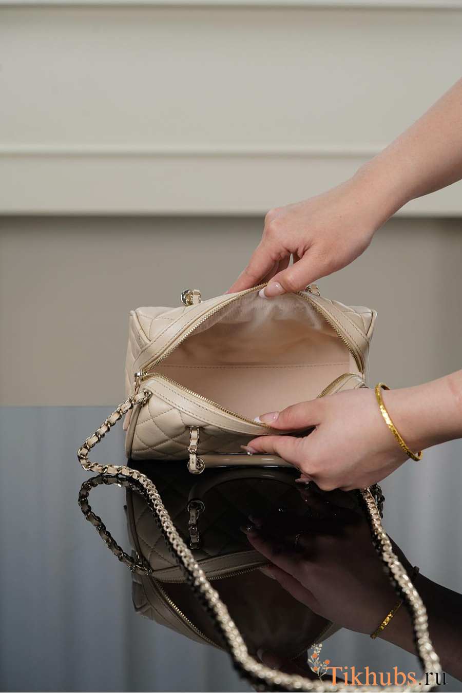 Chanel Clutch With Chain Beige Lambskin 18.5x11x11.4cm