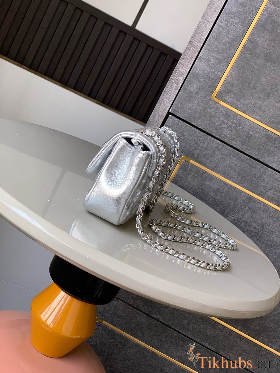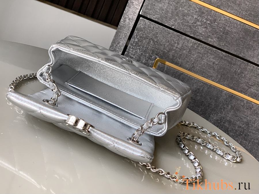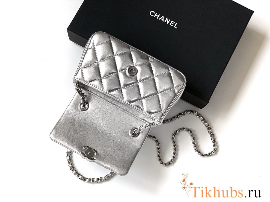 Chanel Clutch With Strap Silver Lambskin 16.5x10x5cm