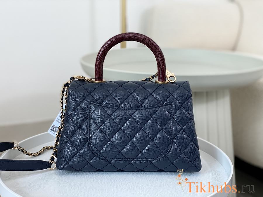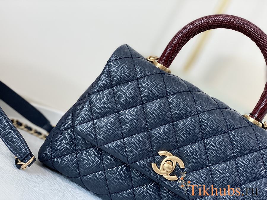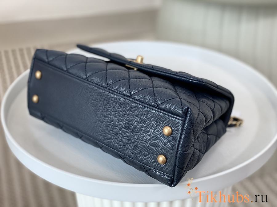 Chanel Coco Handle Bag Small Navy Blue Brown Caviar Gold 24cm