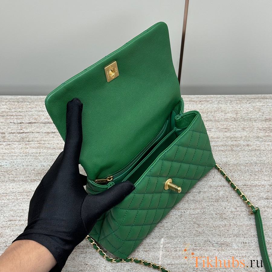 Chanel Coco Top Handle Bag Green Caviar Gold 24x14x10cm