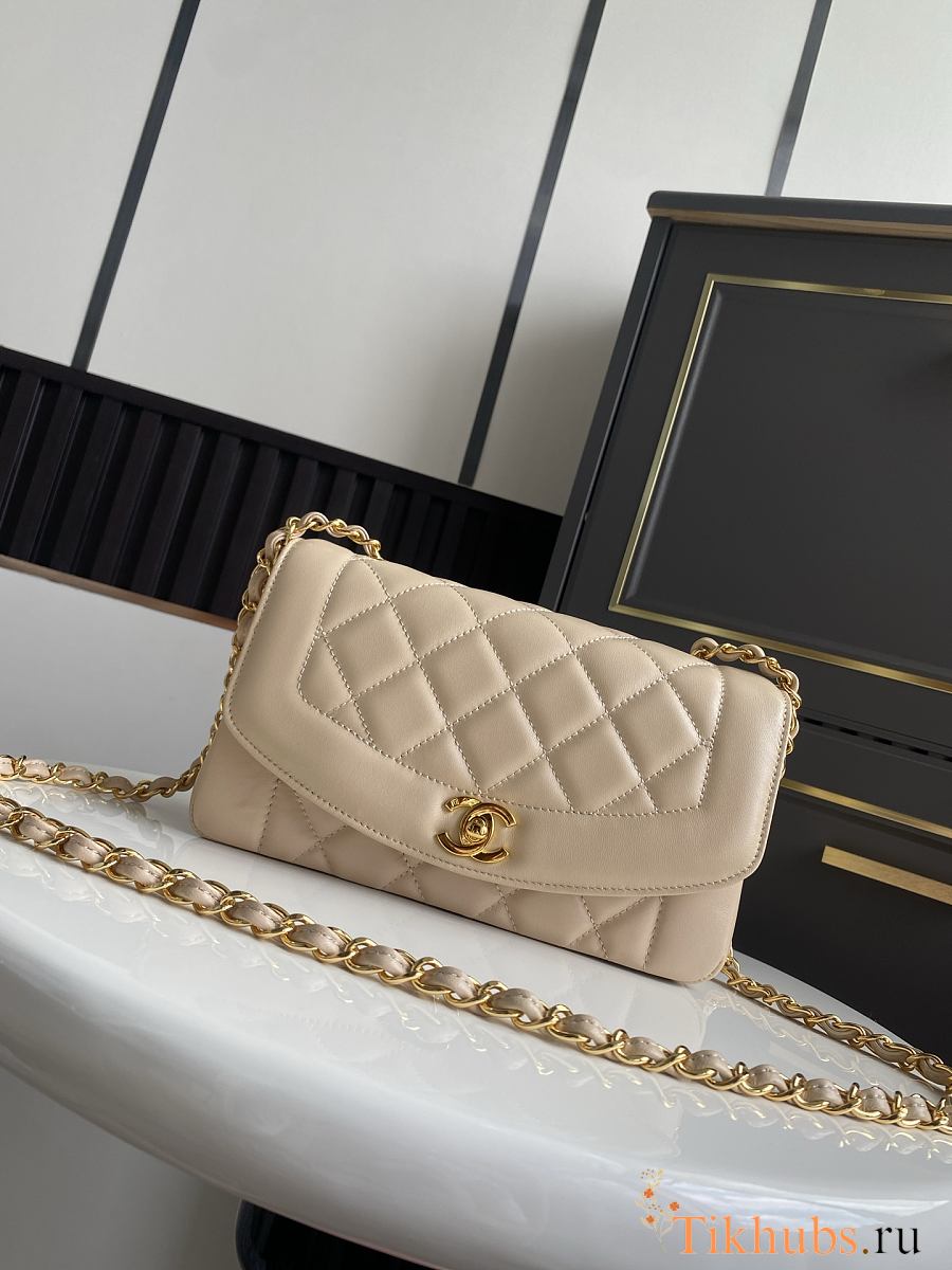 Chanel Diana bag in beige lambskin beige 22.5×14×7cm