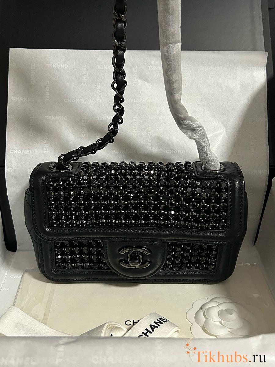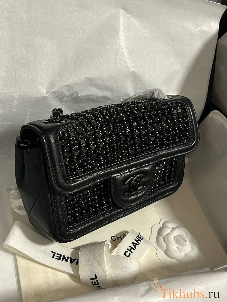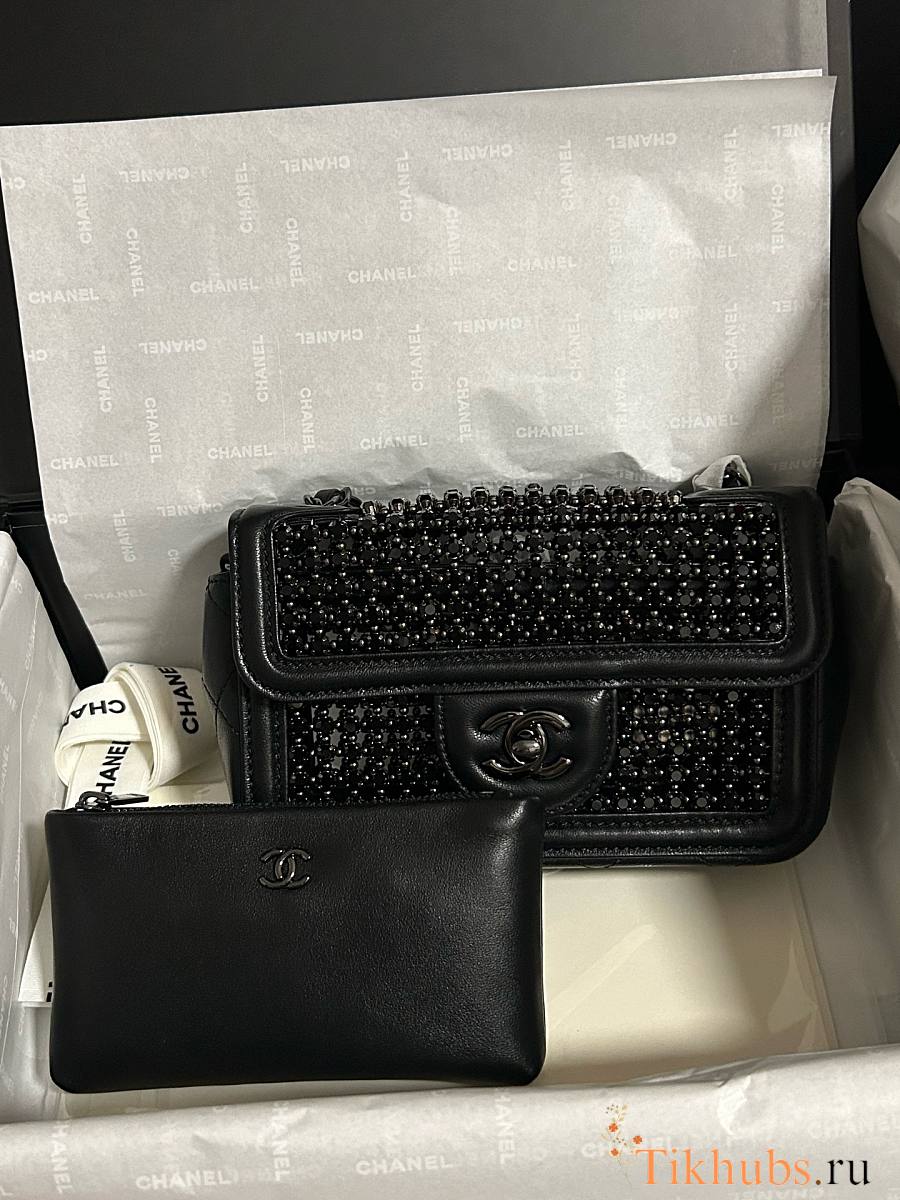Chanel 25 Small Handbag Black Tweed 30x26x14cm