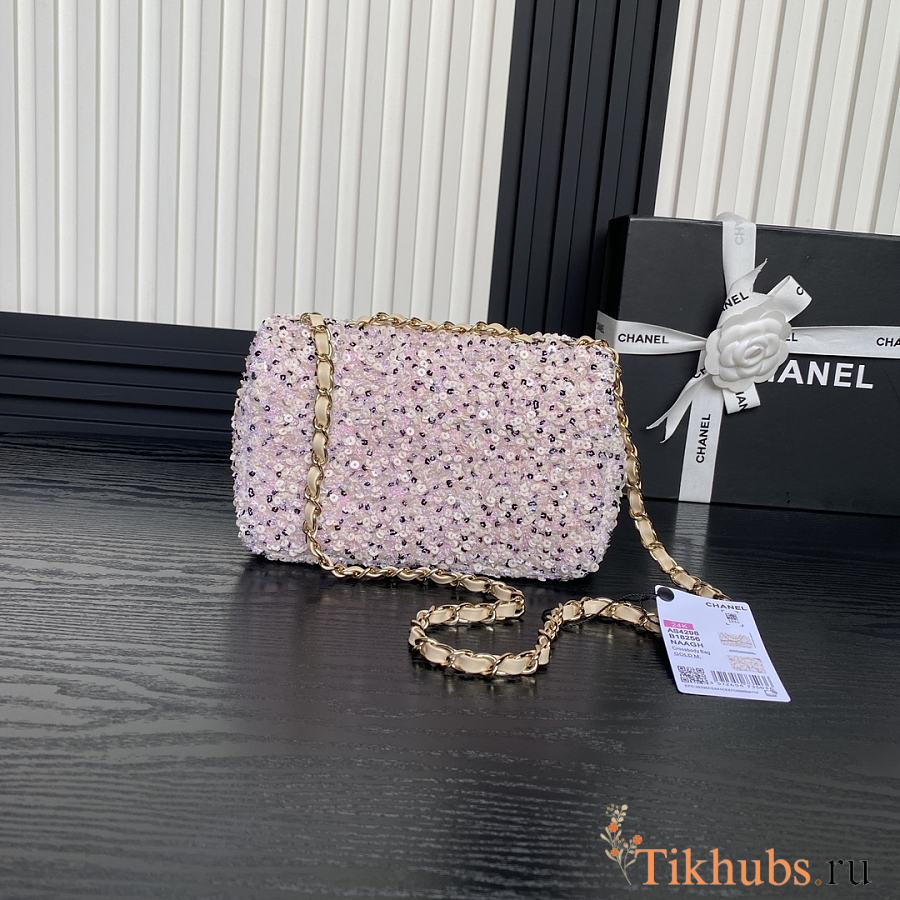 Chanel Evening Bag Sequins Gold White & Silver 20cm