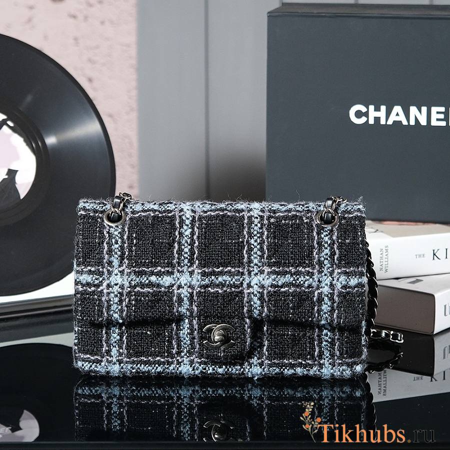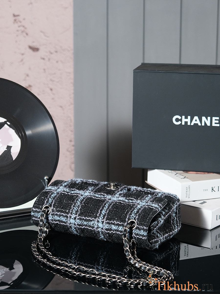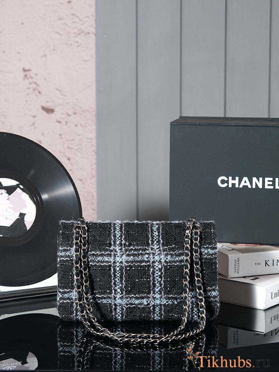 Chanel Flap Bag 11.12 Tweed Black Light Blue 25cm