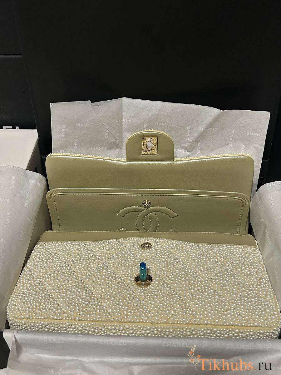 Chanel Flap Classic Handbag Velvet Crystal Pearl Black 25cm