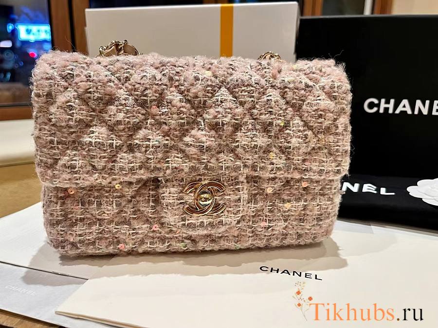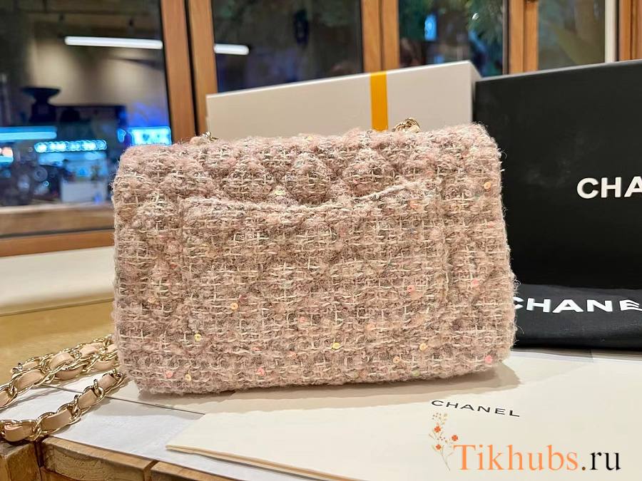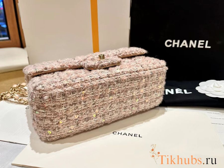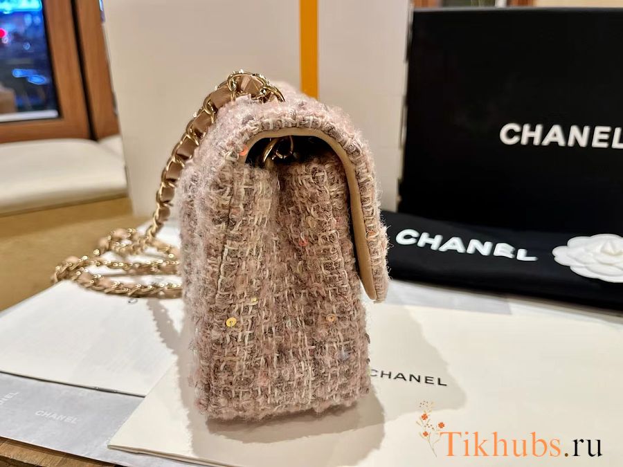 Chanel Flap Bag Beige Tweed Gold 20cm