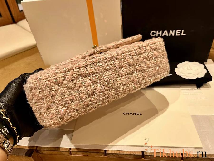 Chanel Flap Bag Beige Tweed Gold 25cm