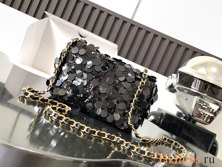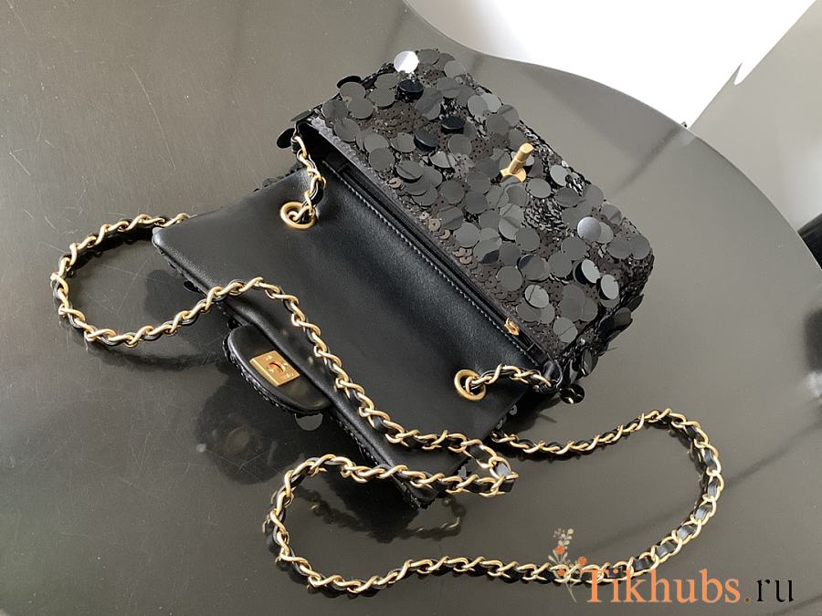 Chanel Flap Bag Bling Bling Black Gold 20x12X9cm