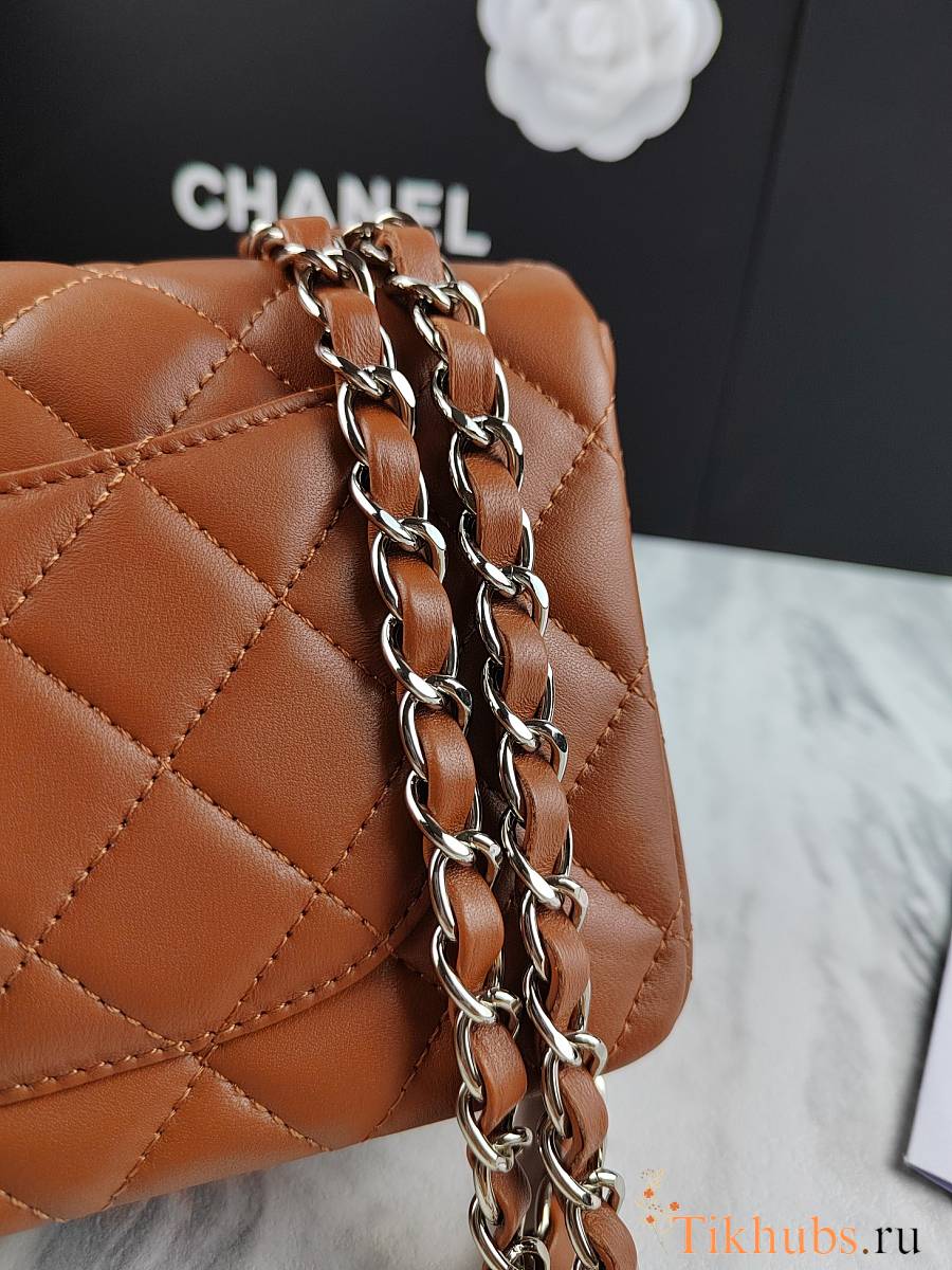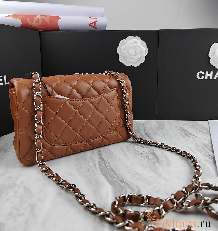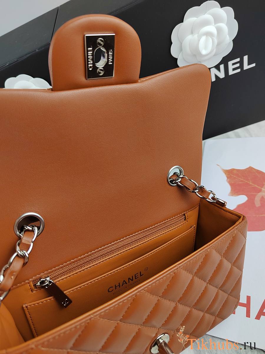 Chanel Flap Bag Caramel Lambskin Silver 20cm
