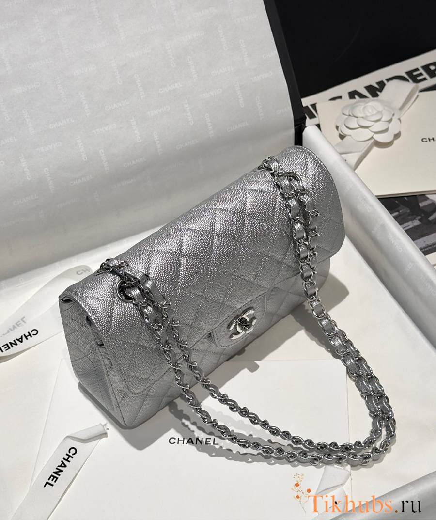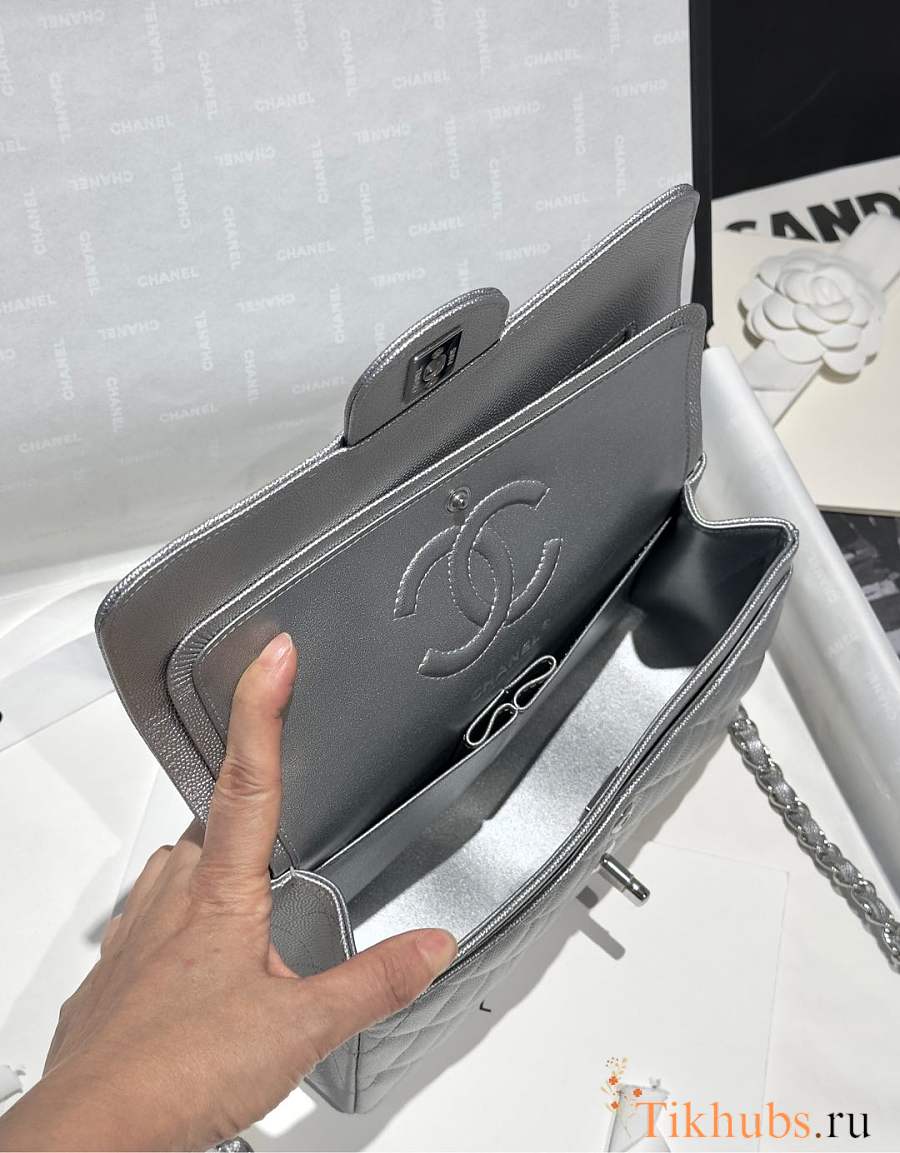 Chanel Flap Bag Caviar Silver 23cm