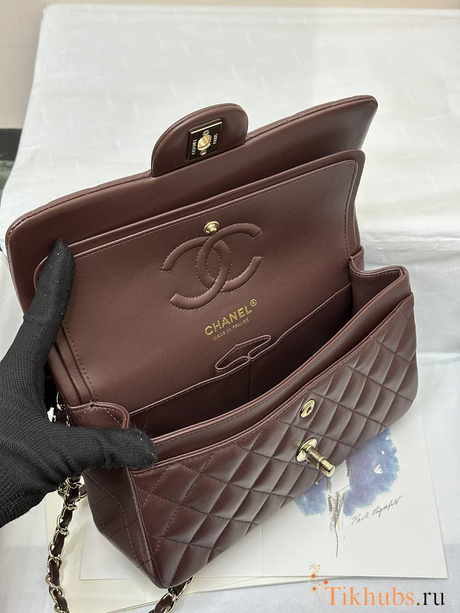 Chanel Flap Bag Dark Brown Lambskin Gold 23cm