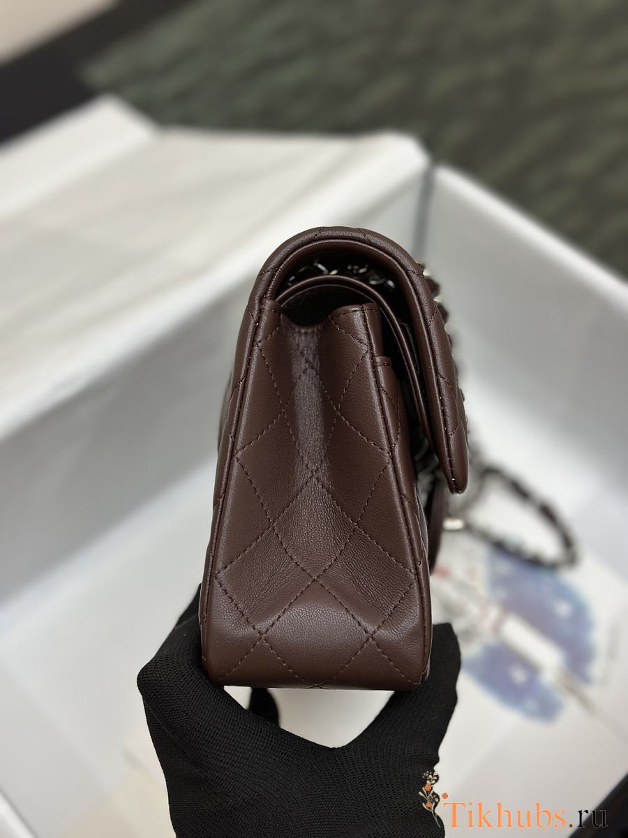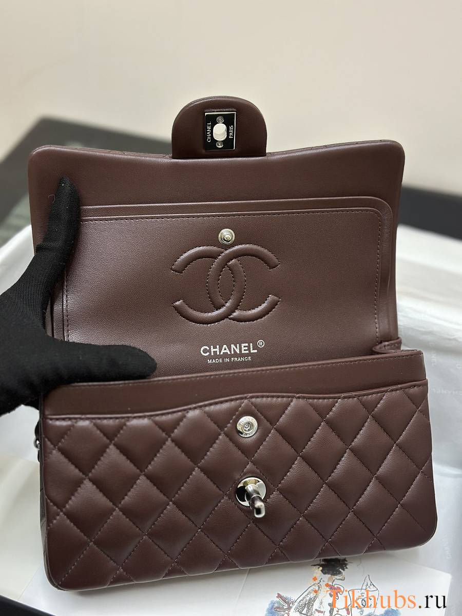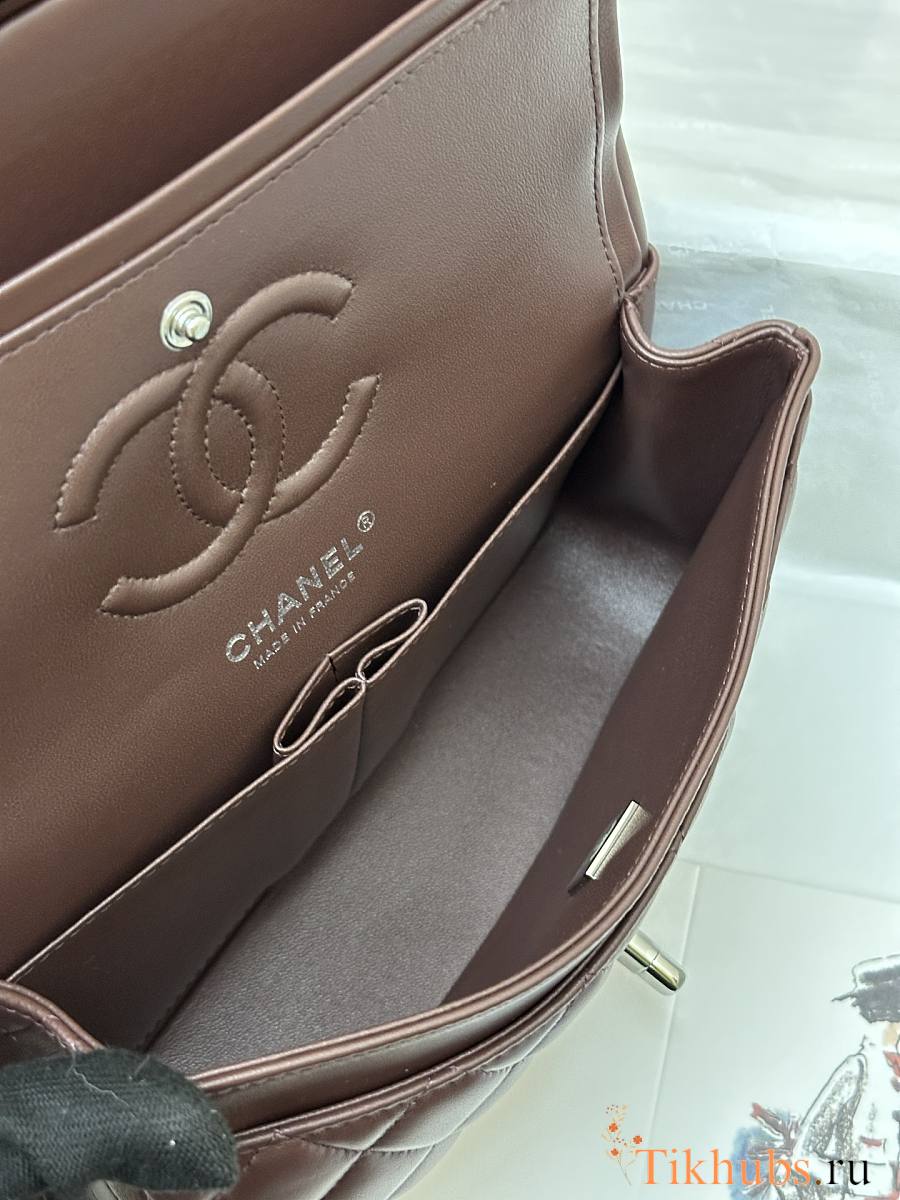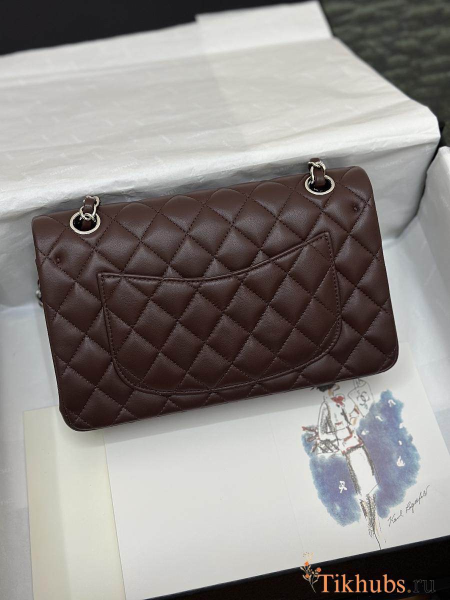Chanel Flap Bag Dark Brown Lambskin Silver 23cm