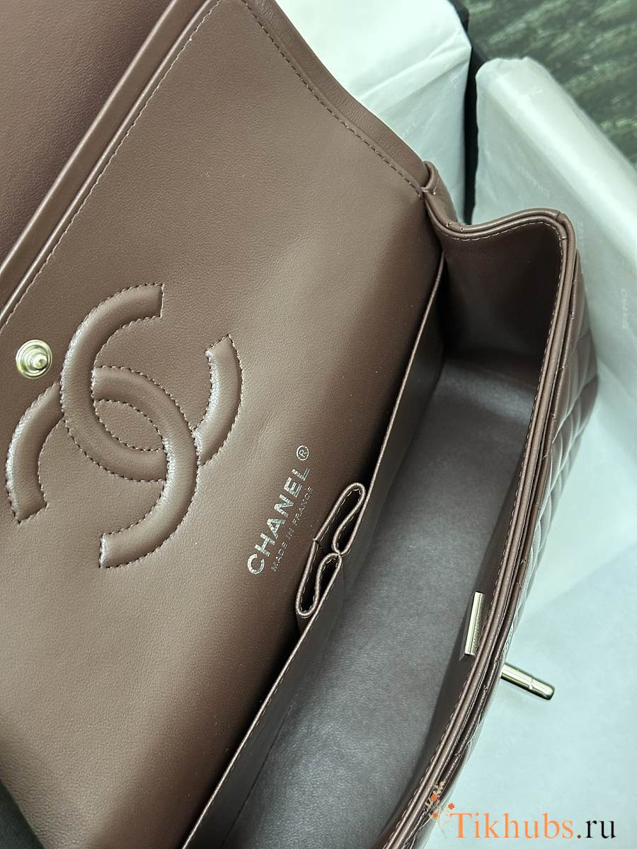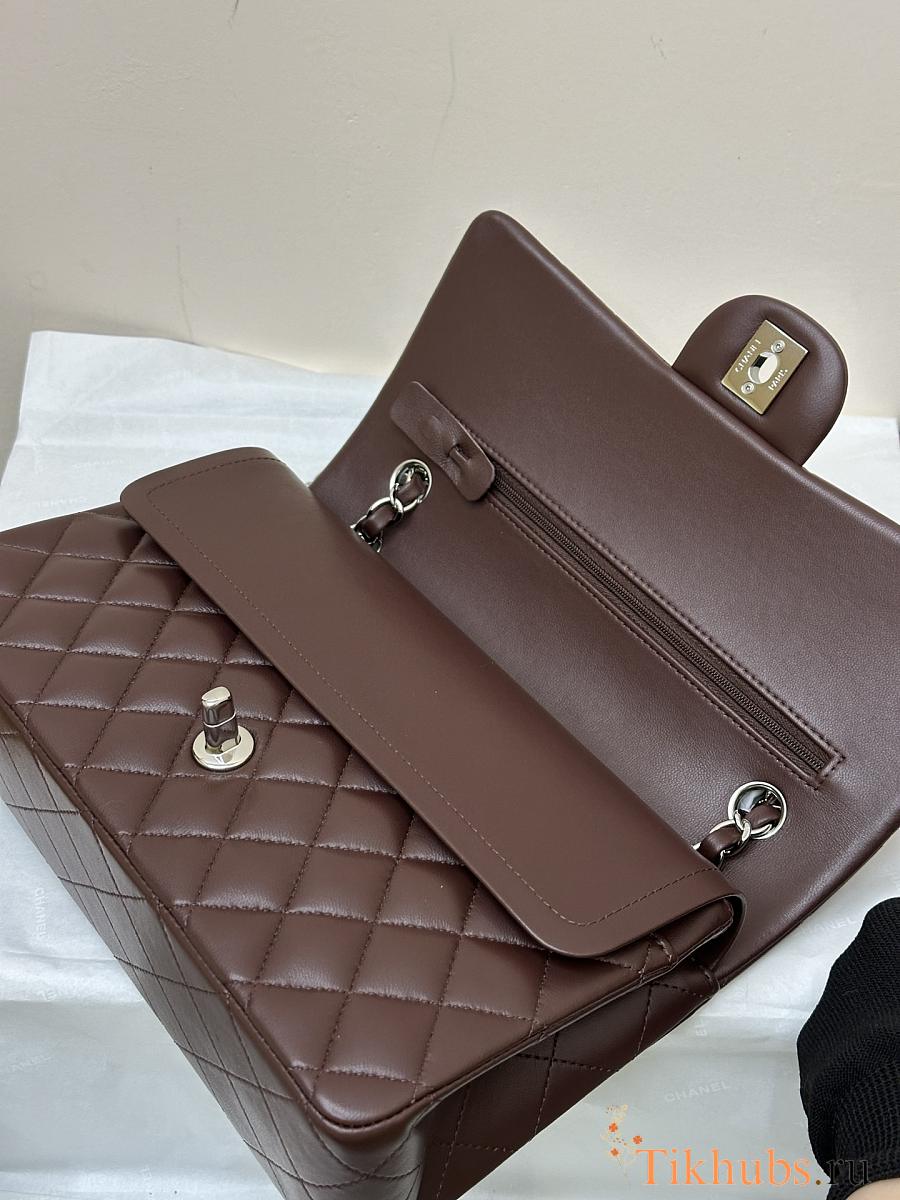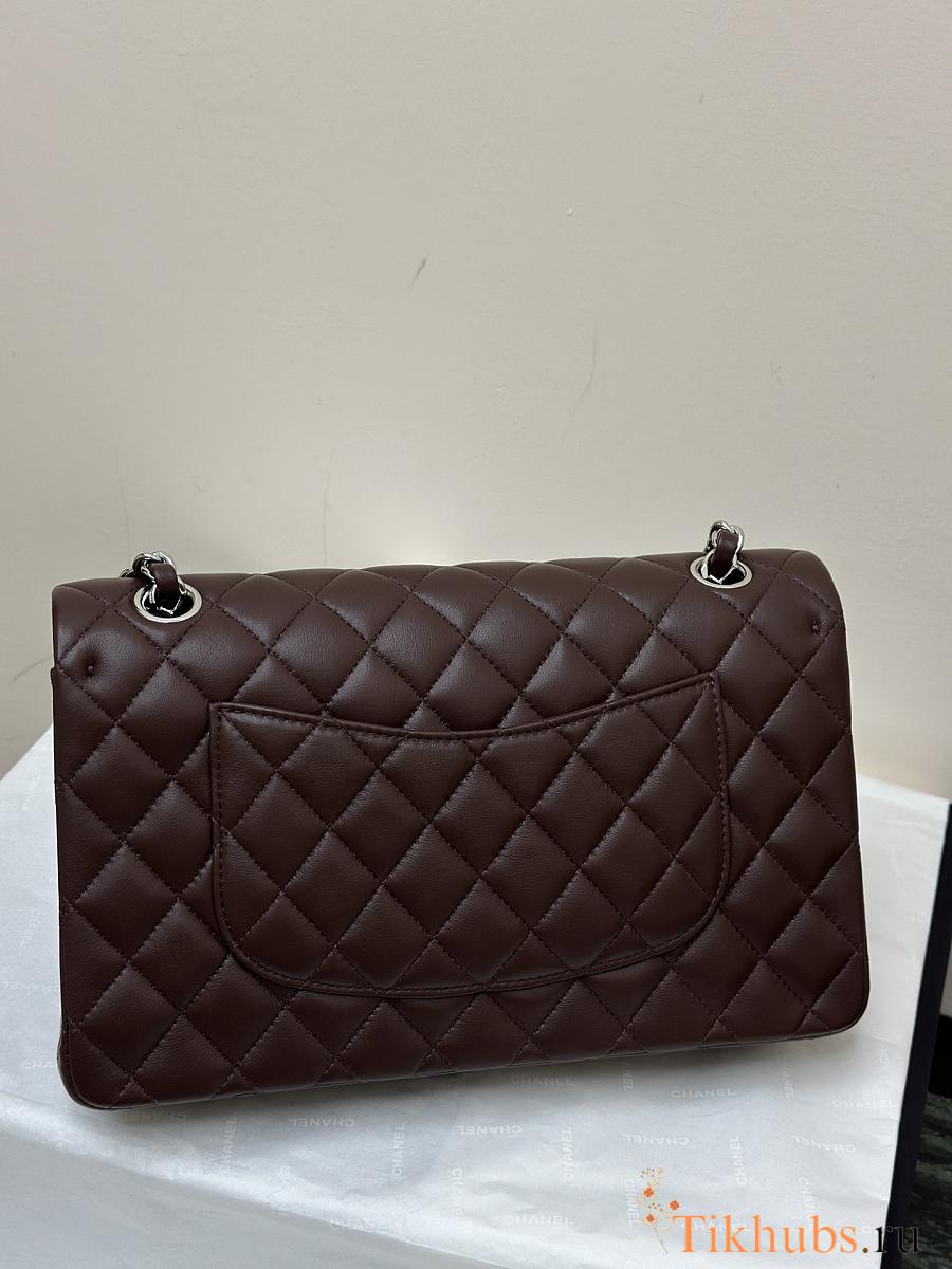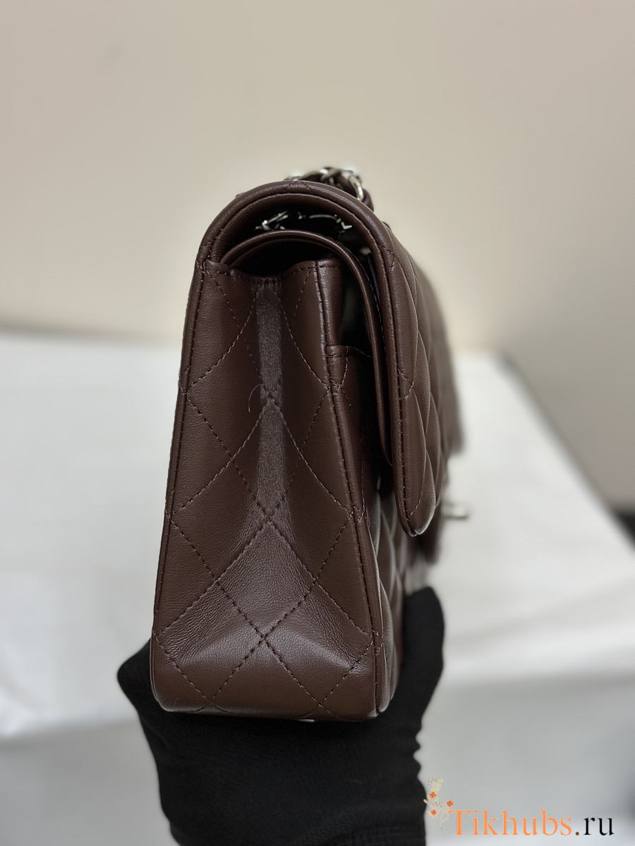 Chanel Flap Bag Dark Brown Lambskin Silver 25cm
