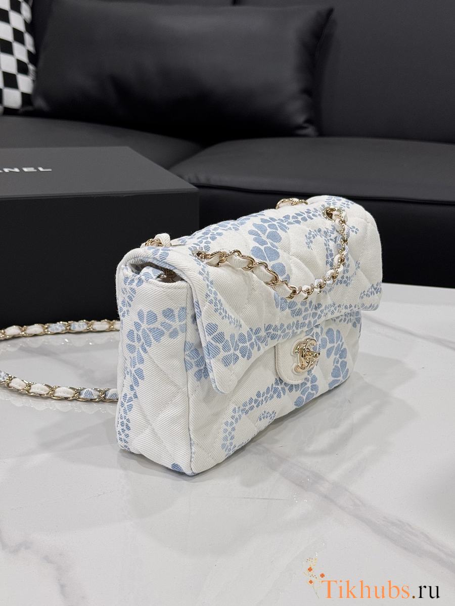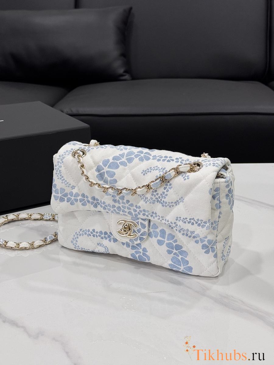 Chanel Flap Bag Denim Gold White & Blue 25cm