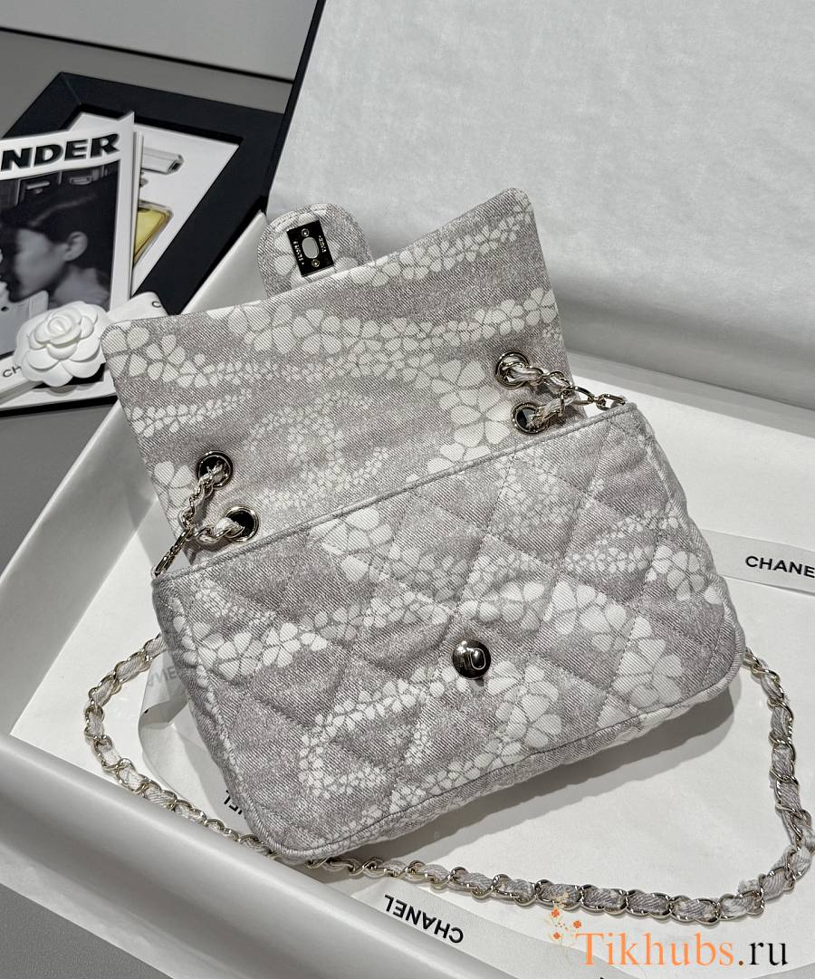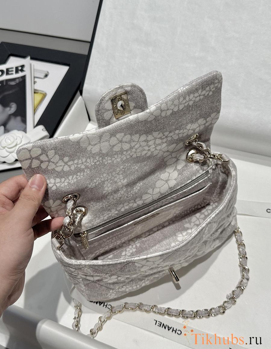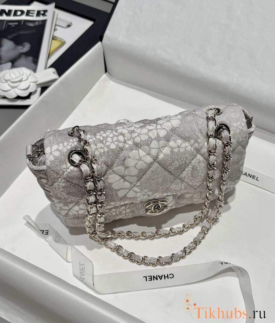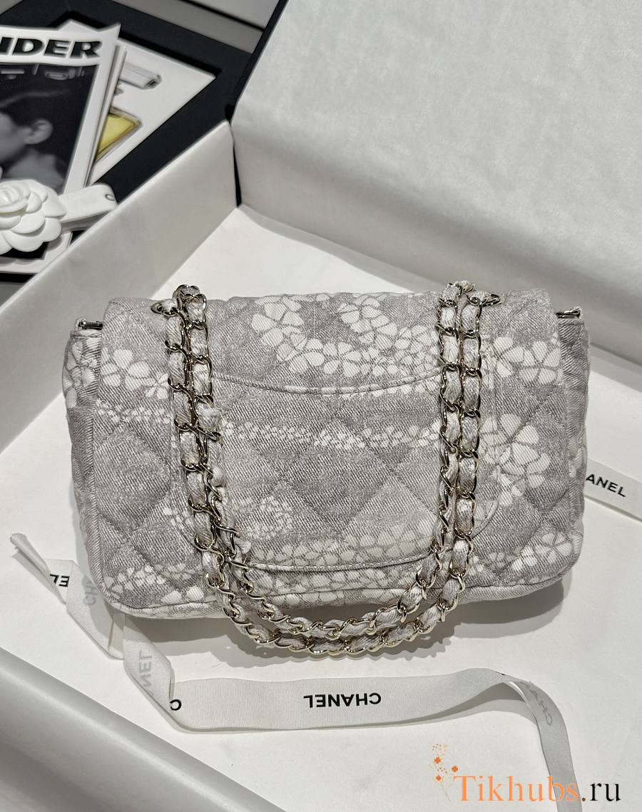 Chanel Flap Bag Denim Gold White & Grey 25cm