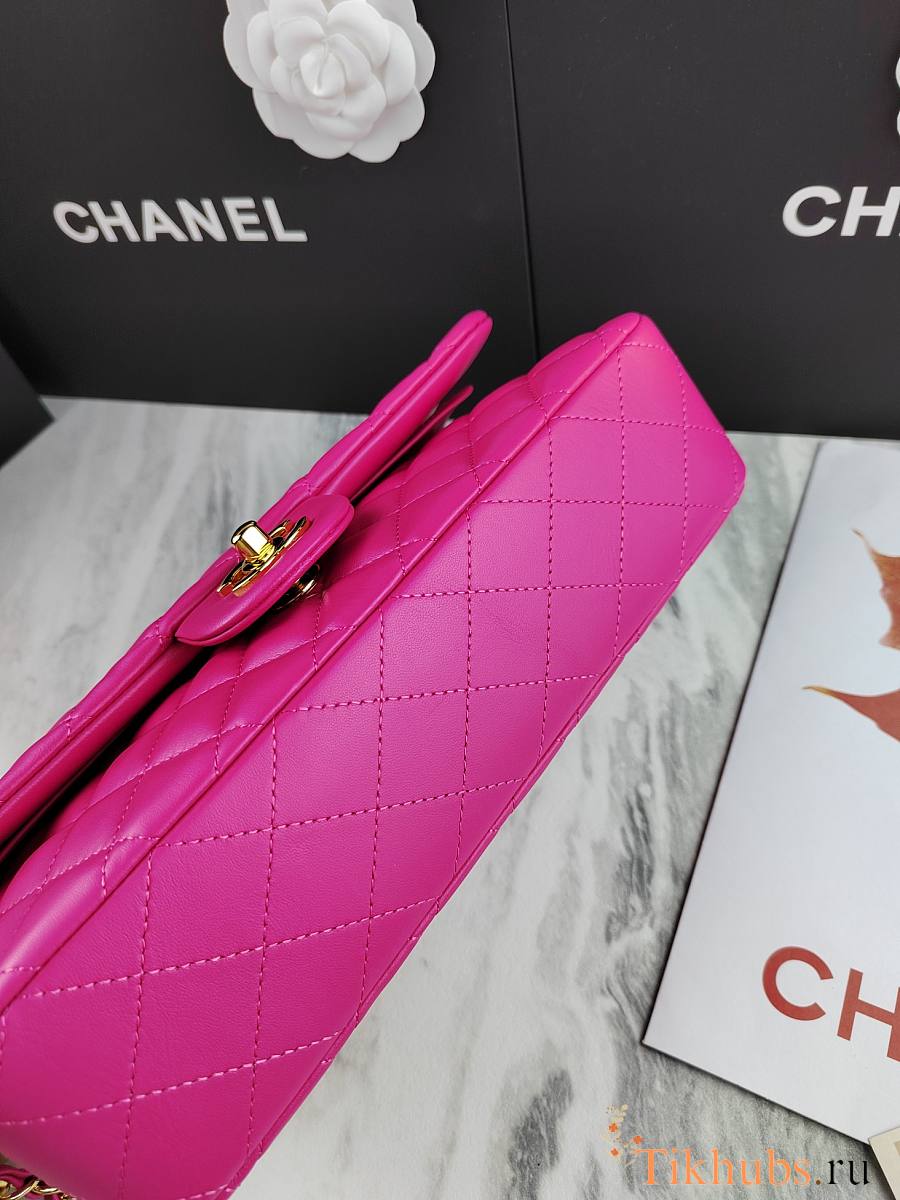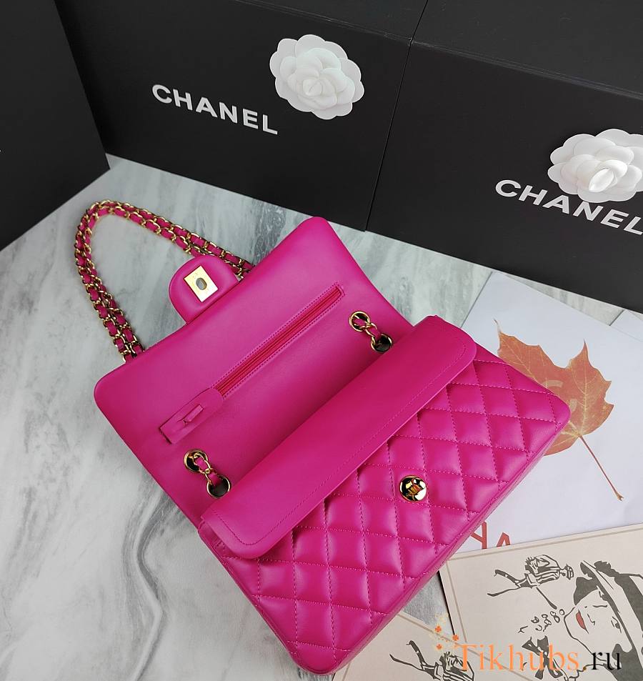 Chanel Flap Bag Fuchsia Pink Lambskin Gold 25cm
