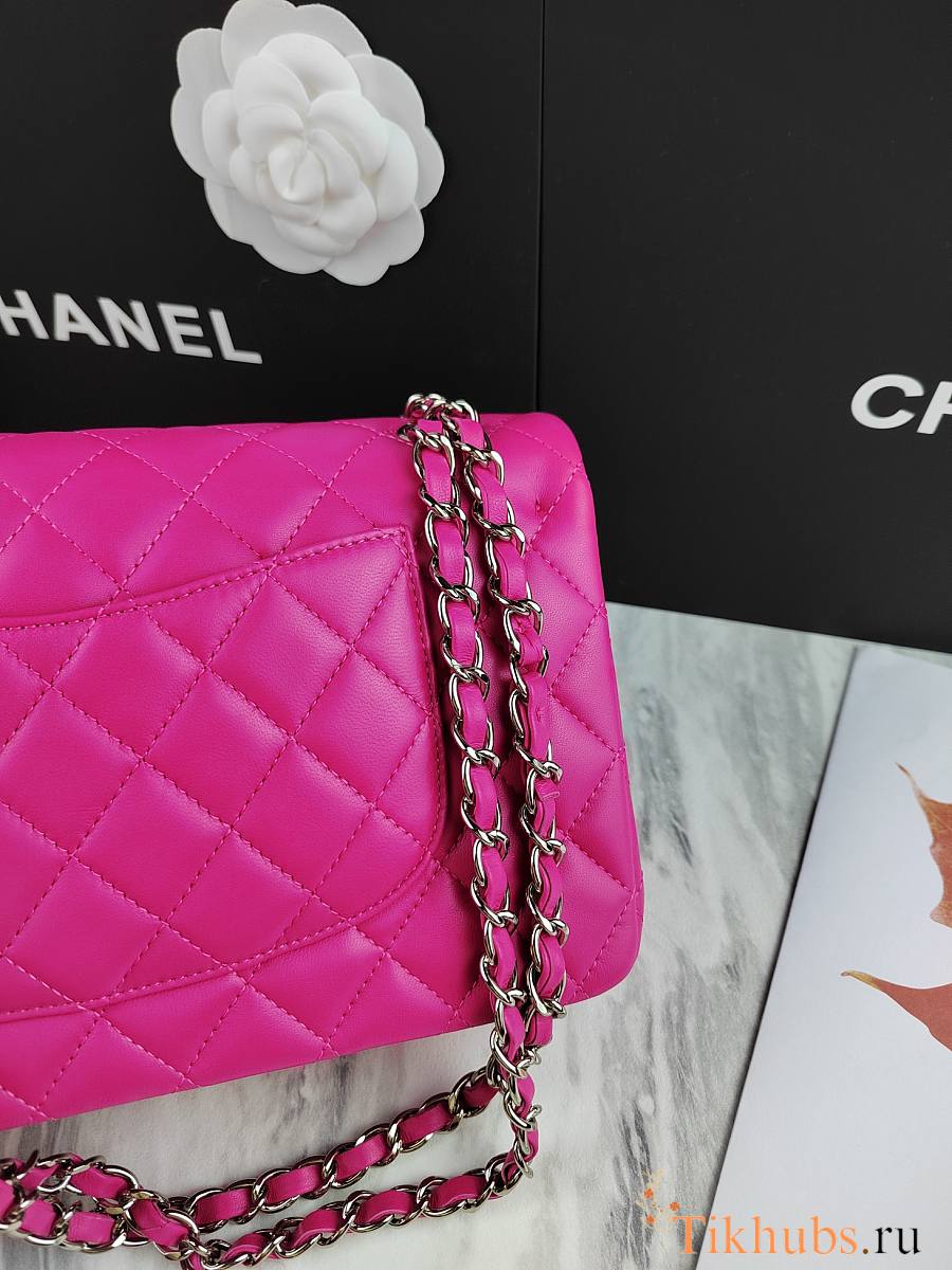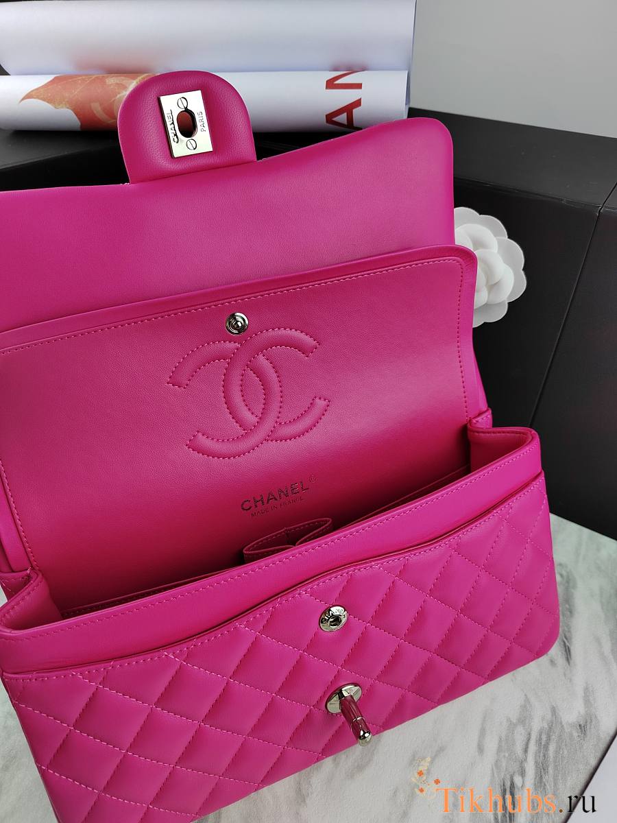 Chanel Flap Bag Fuchsia Pink Lambskin Silver 25cm