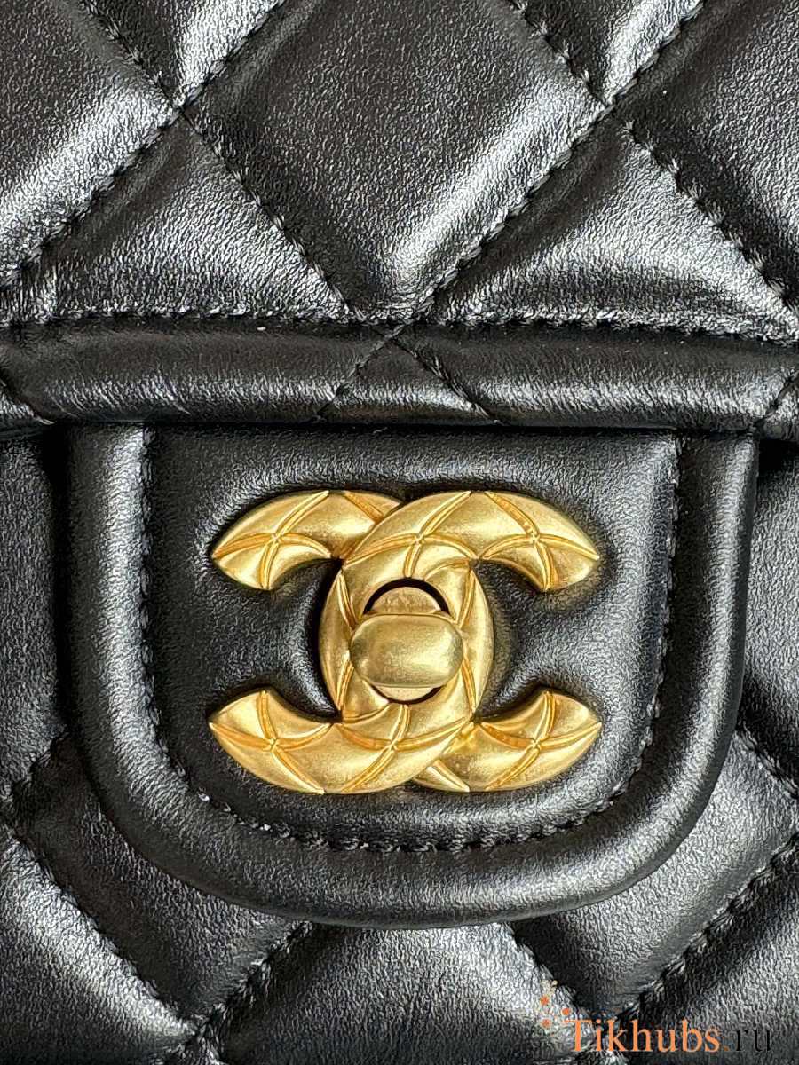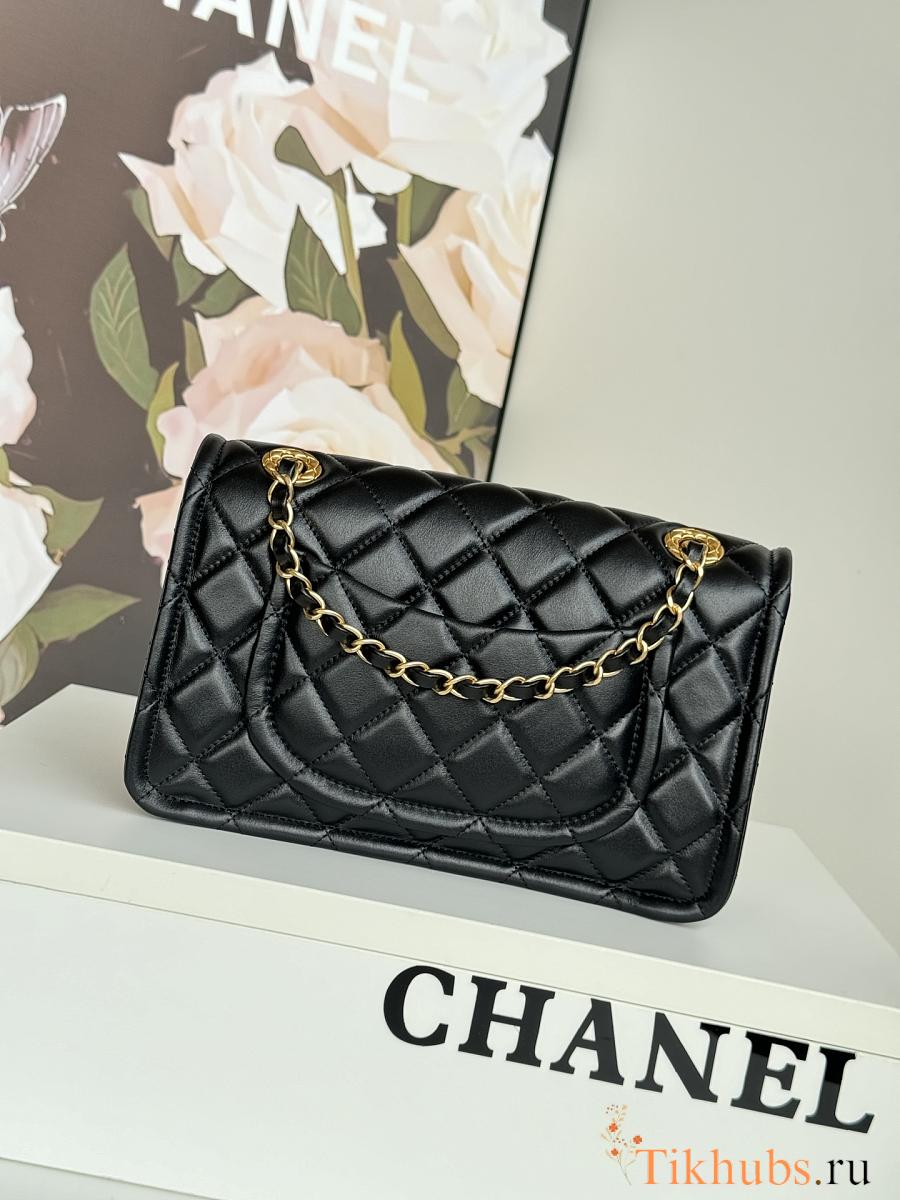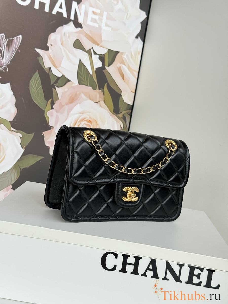 Chanel Flap Bag Lambskin Gold Black 24.5x15.5x7cm