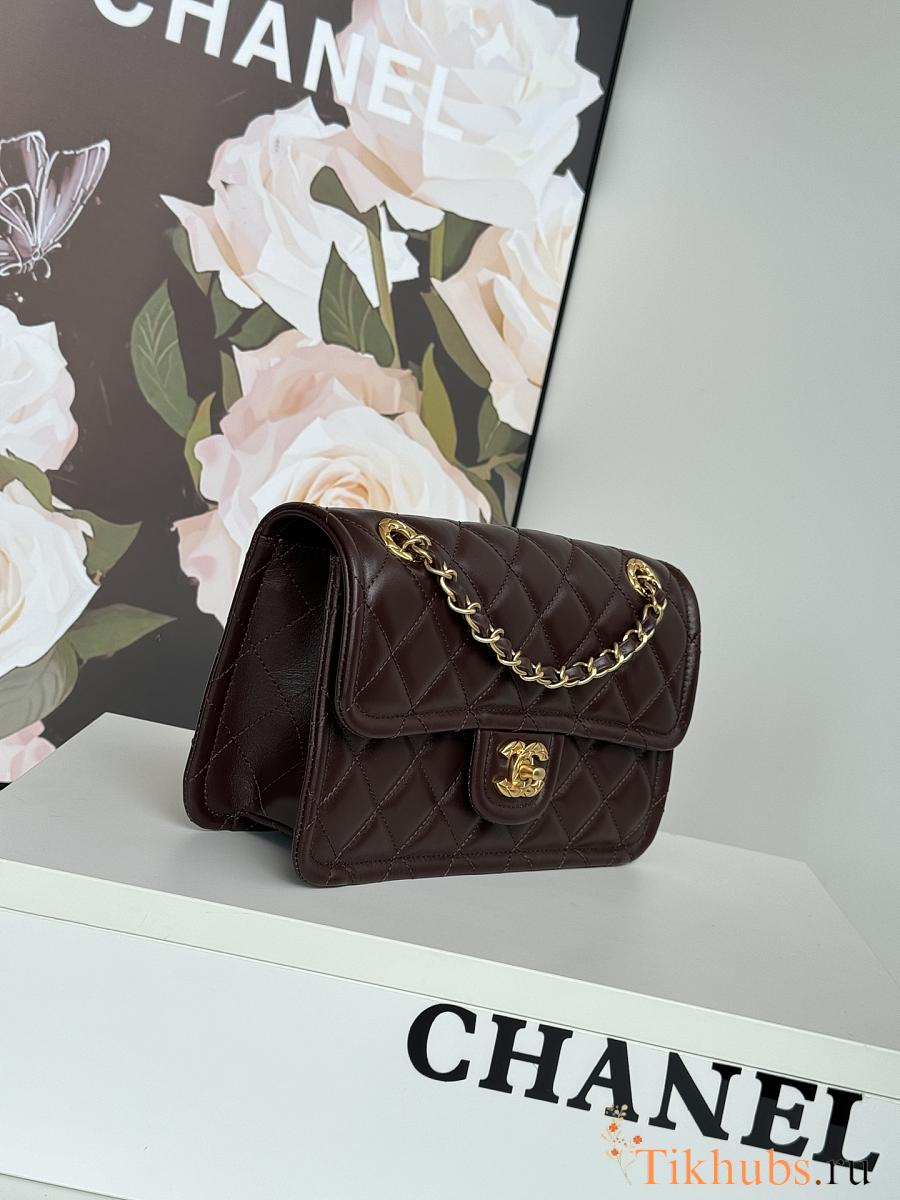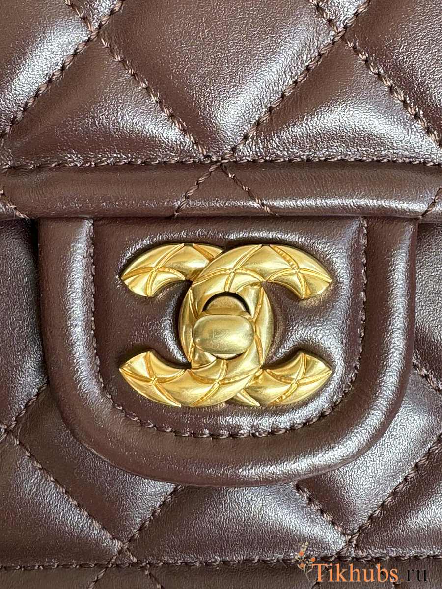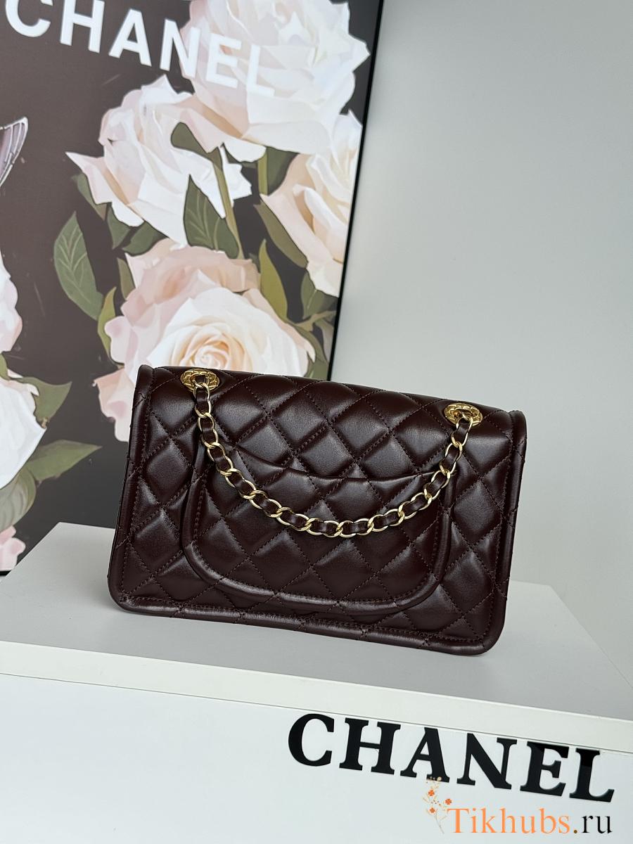 Chanel Flap Bag Lambskin Gold Brown 24.5x15.5x7cm