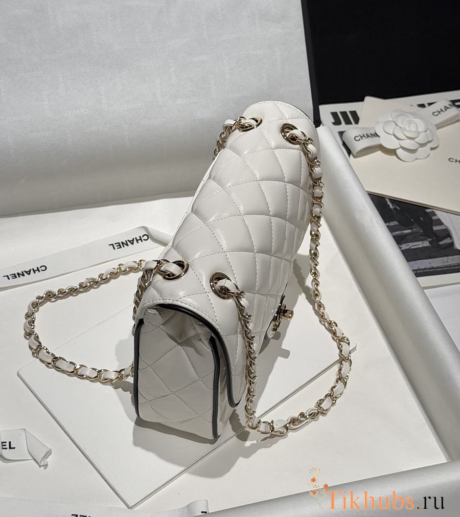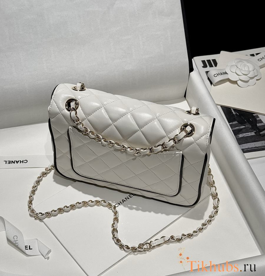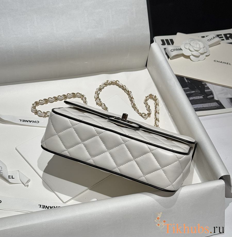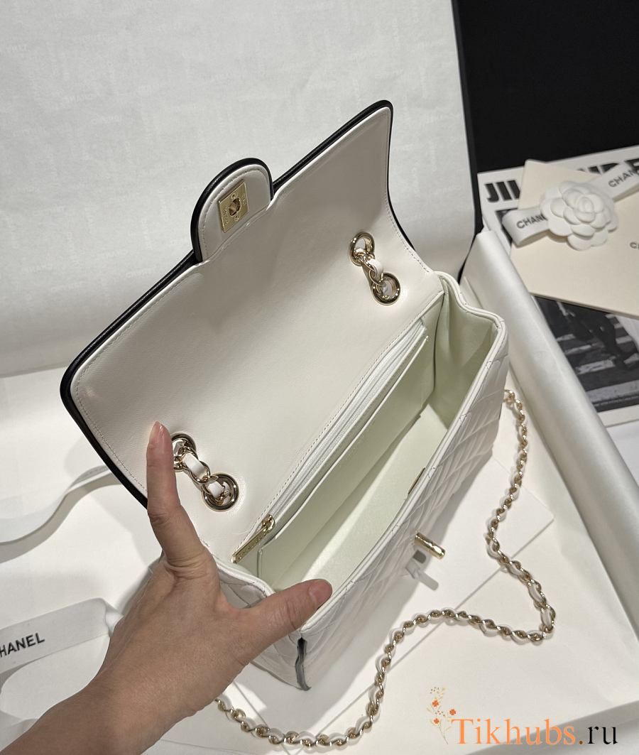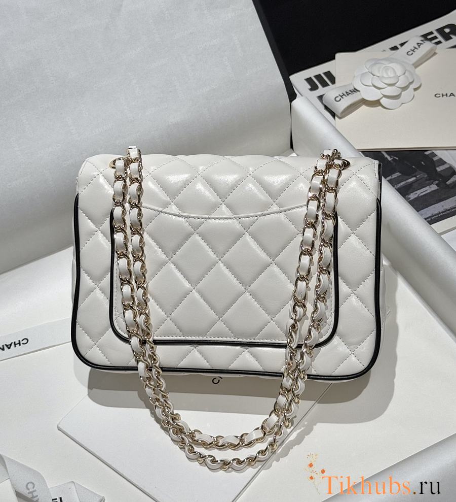 Chanel Flap Bag Lambskin White Black 23.5x16.5x6.5cm