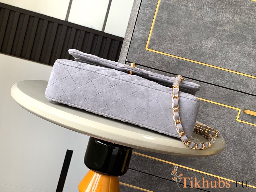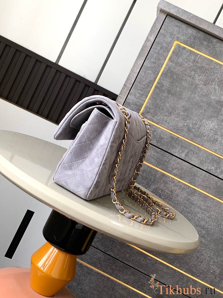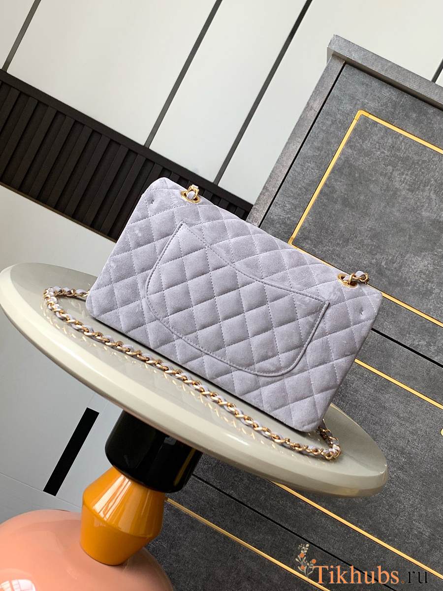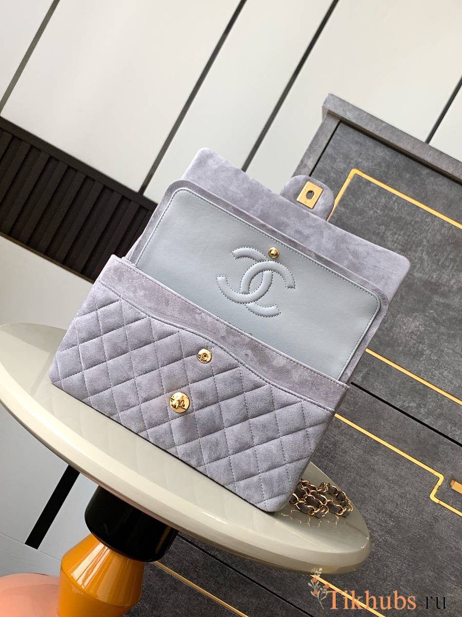 Chanel Flap Bag Light Grey Suede Gold 25cm