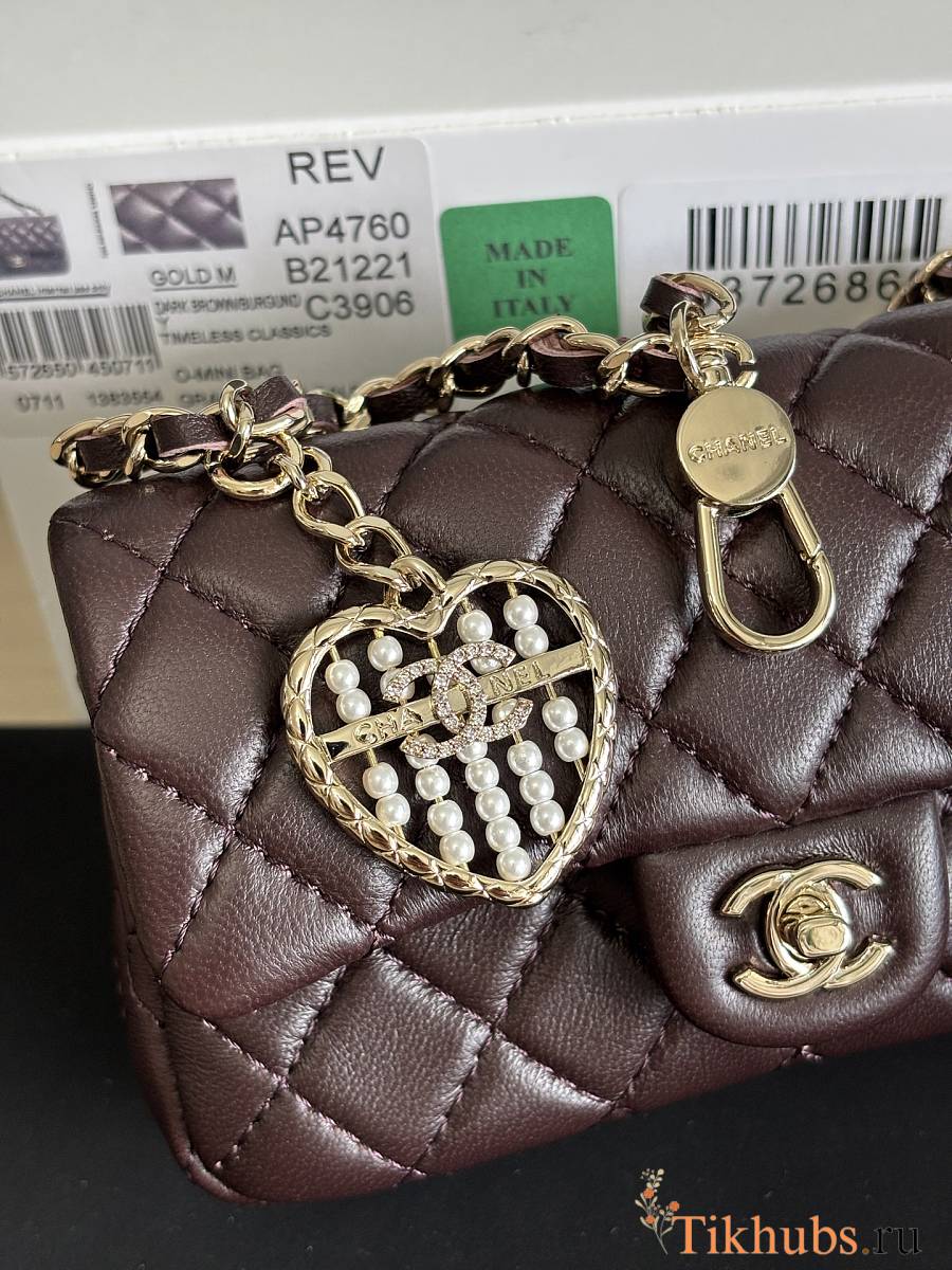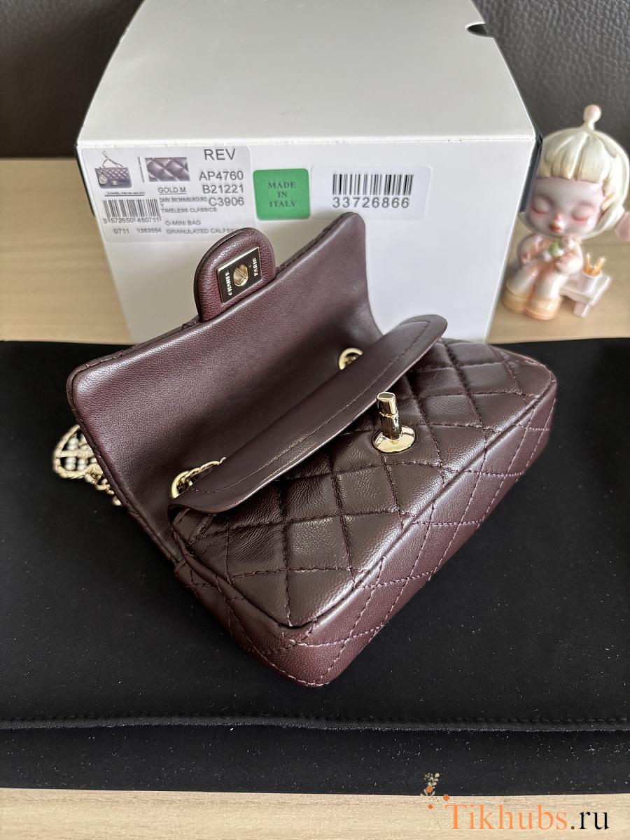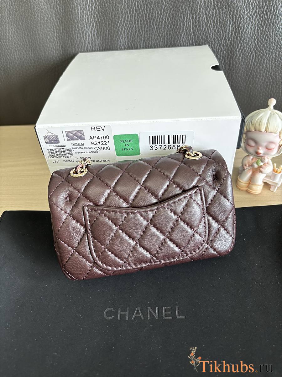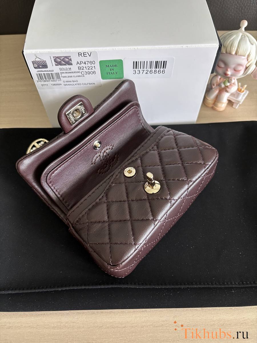 Chanel Flap Bag Mini with Hook Lambskin Gold Brown 12.5x8x5cm