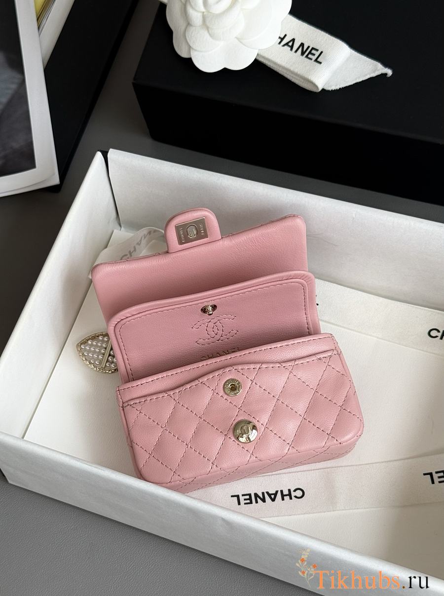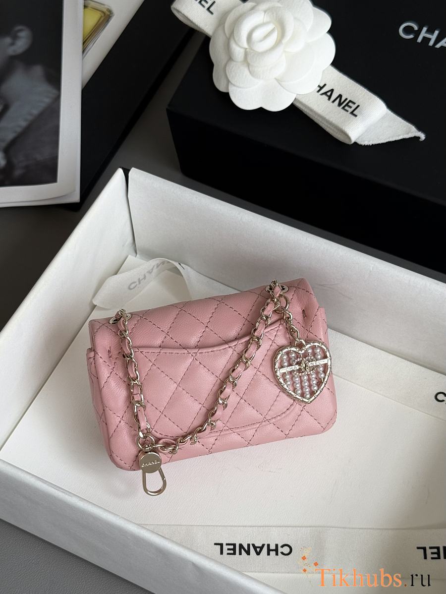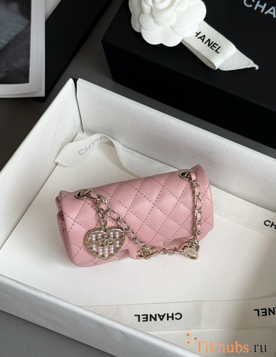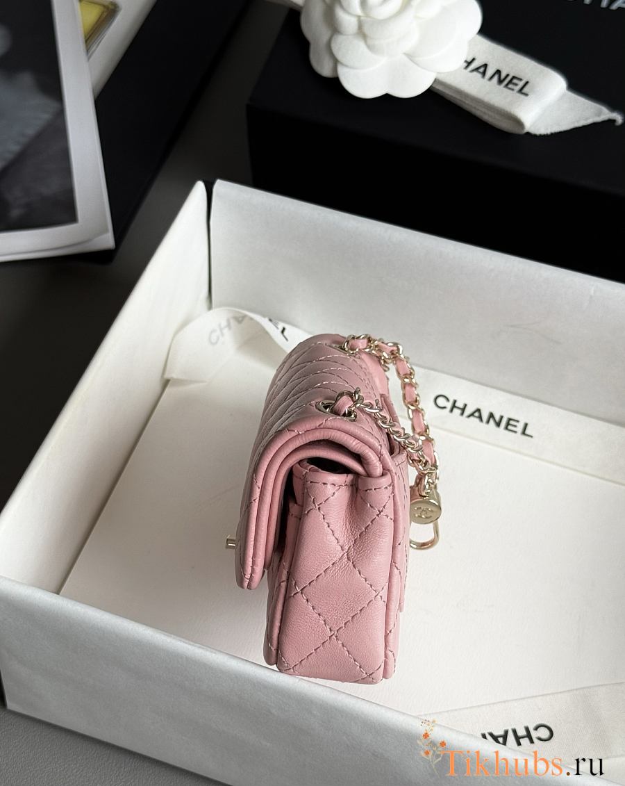 Chanel Flap Bag Mini with Hook Lambskin Gold Pink 12.5x8x5cm