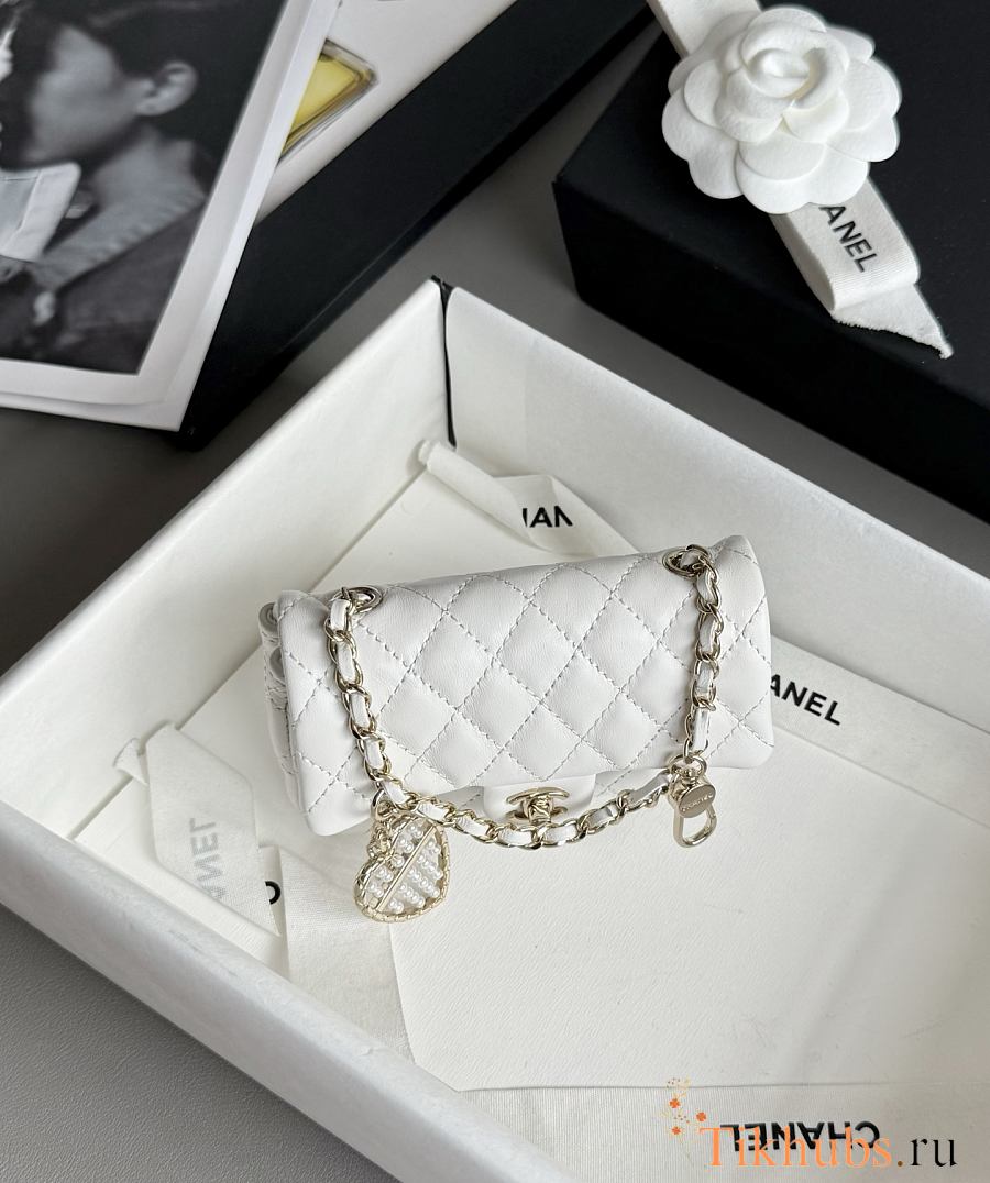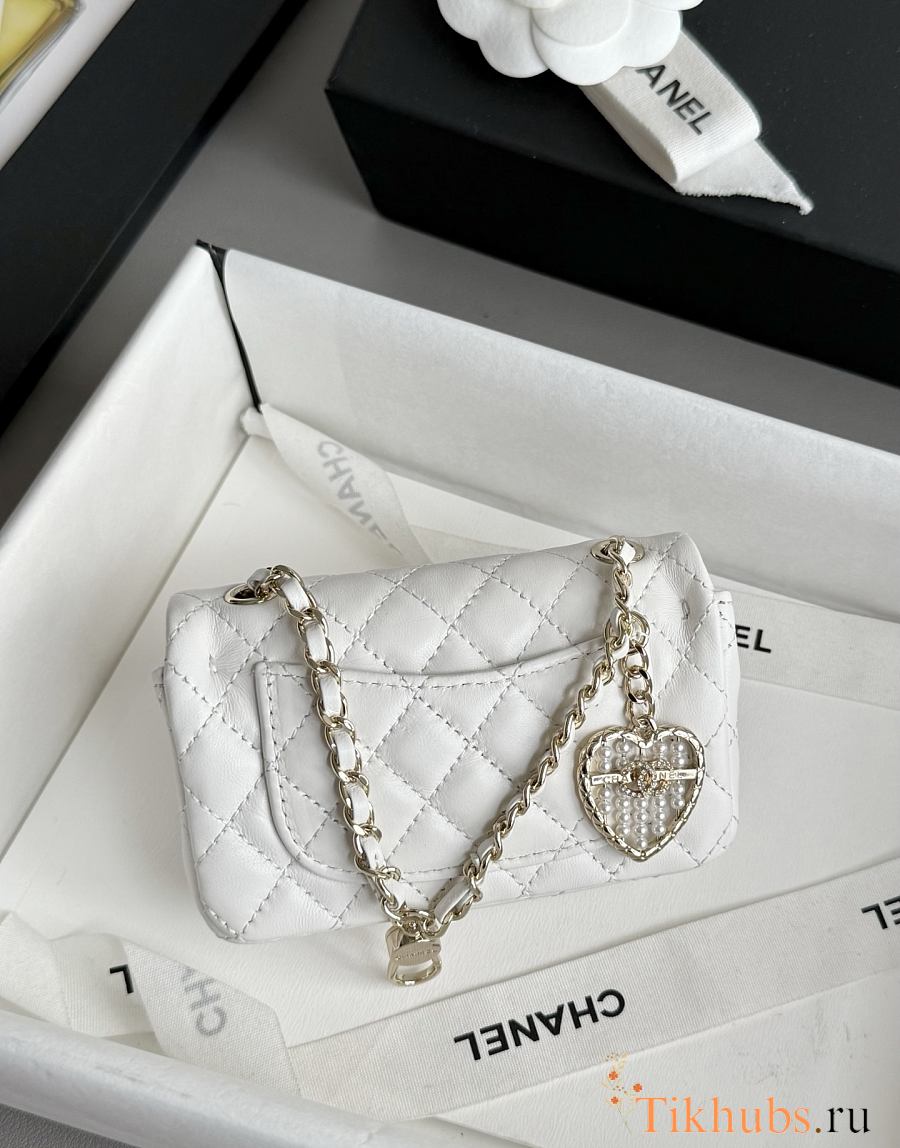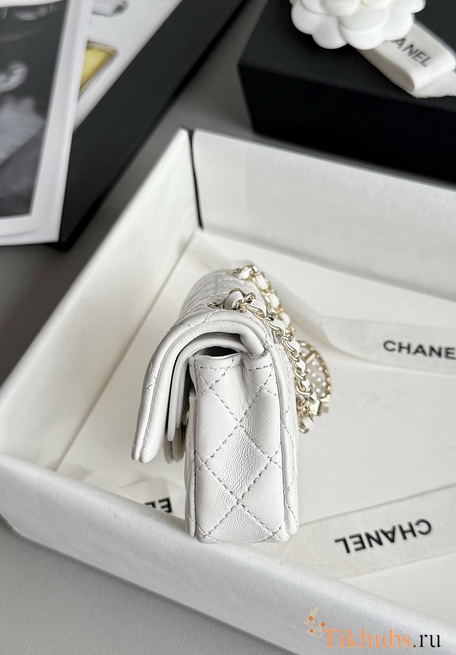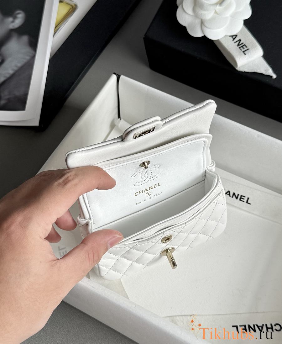 Chanel Flap Bag Mini with Hook Lambskin Gold White 12.5x8x5cm