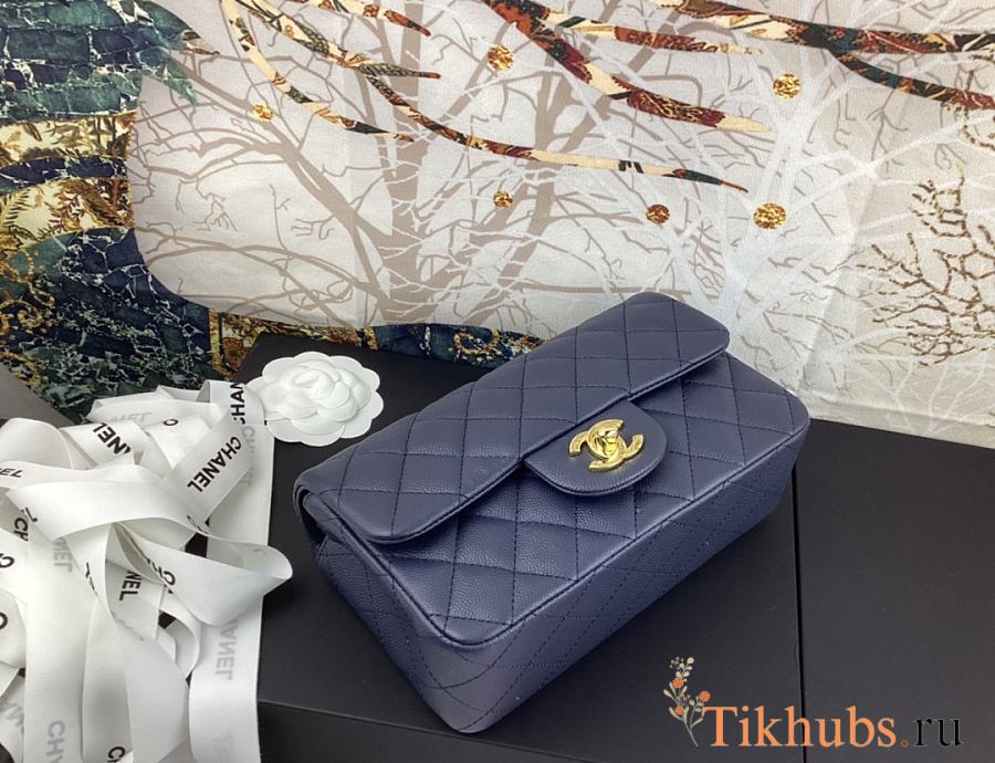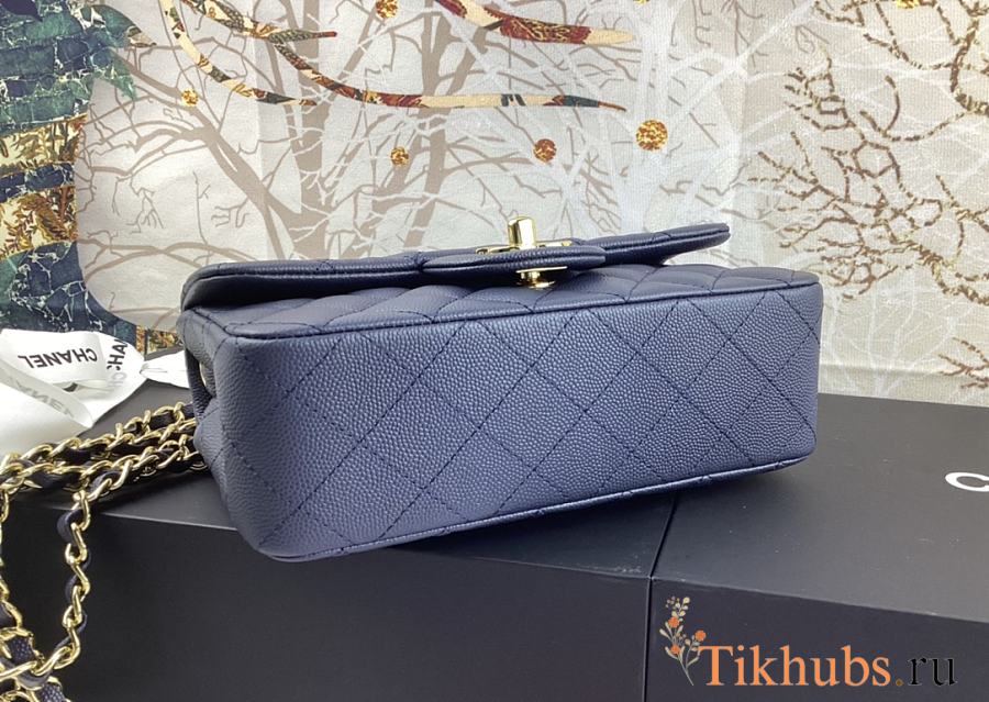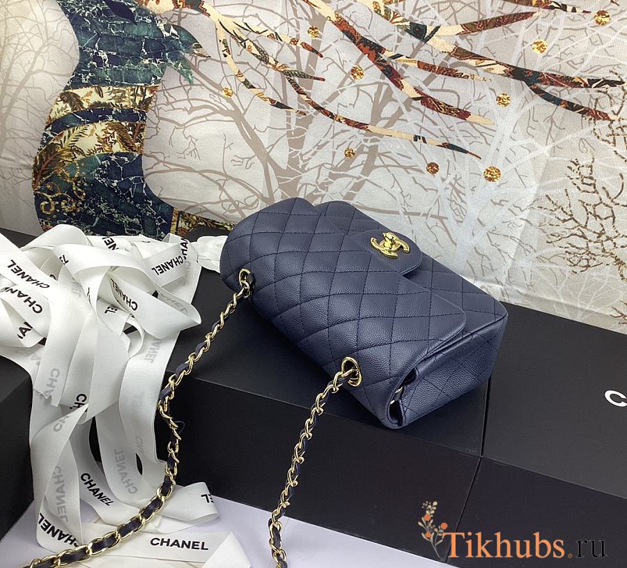 Chanel Flap Bag Navy Blue Gold Caviar 20cm
