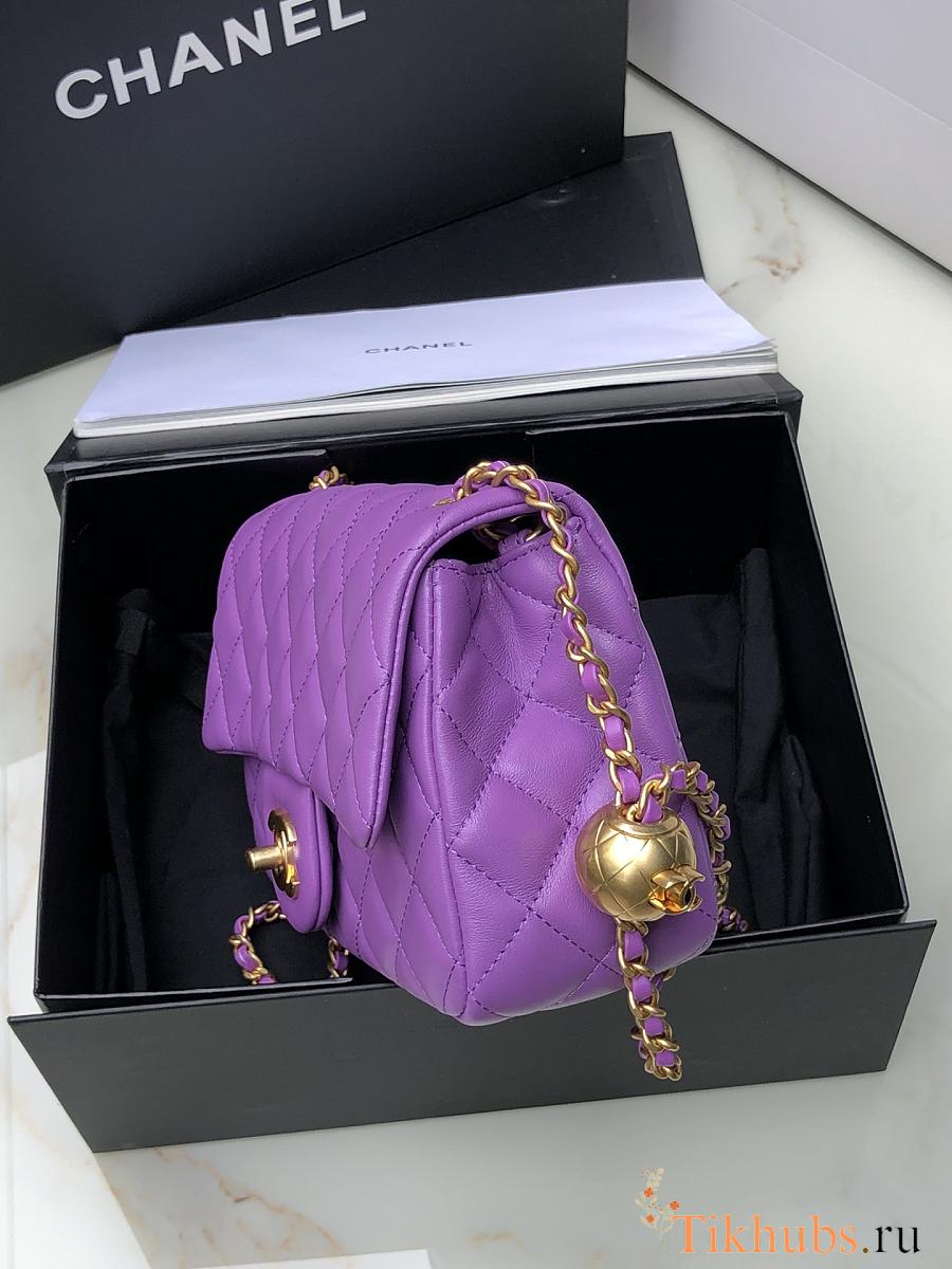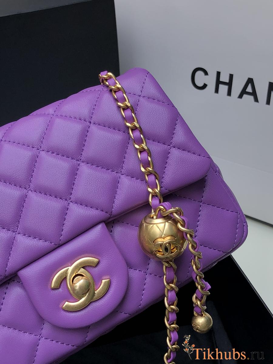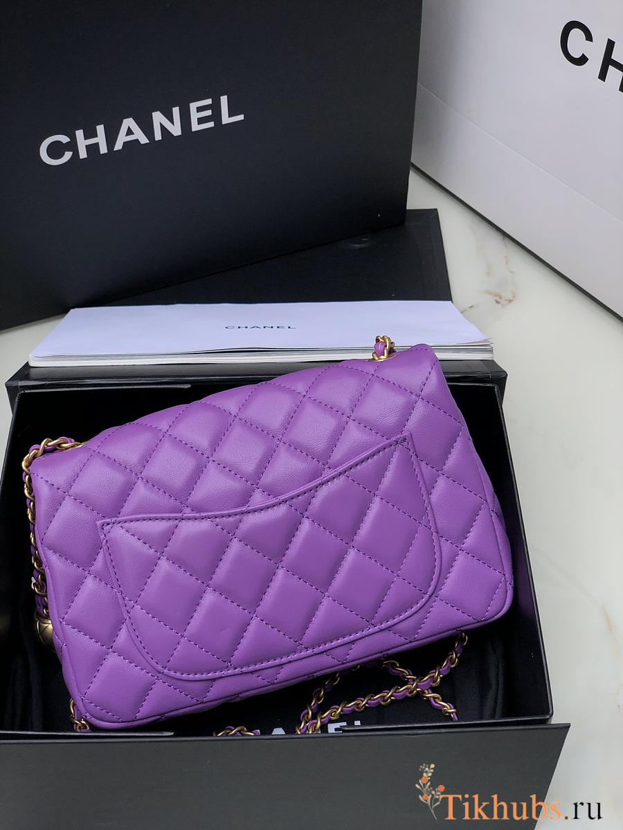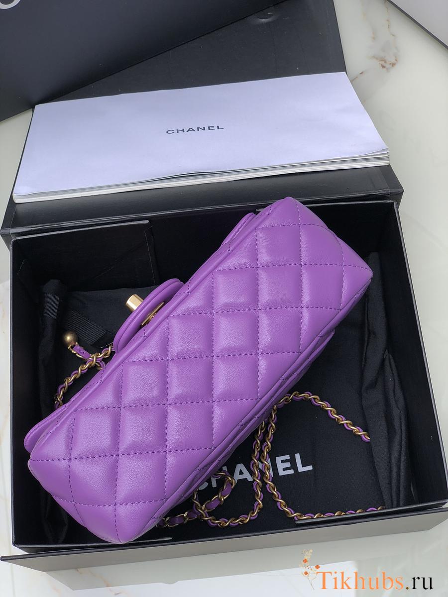 Chanel Flap Bag Purple Lambskin Gold 20cm