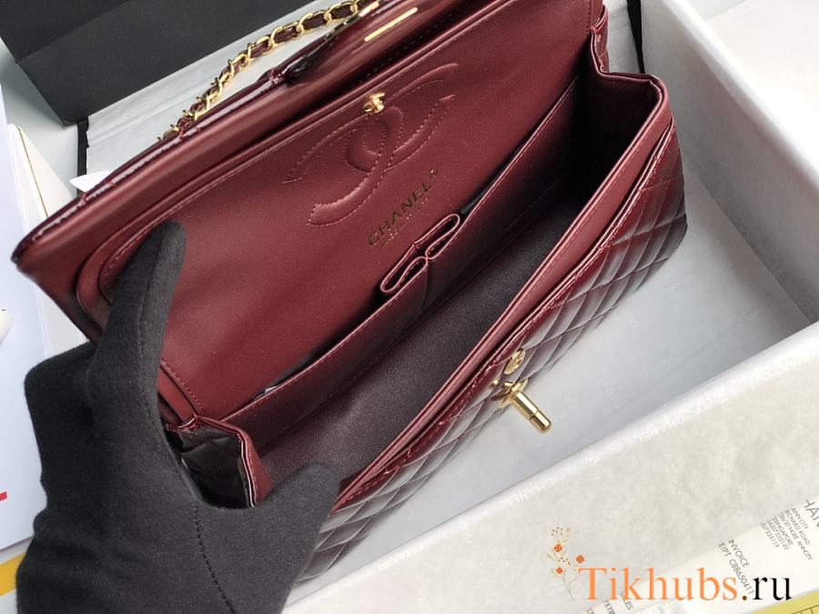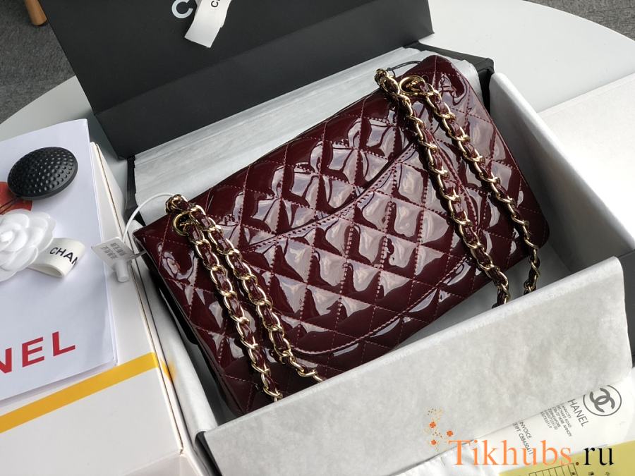 Chanel Flap Bag Red Wine Gold Patent 25cm