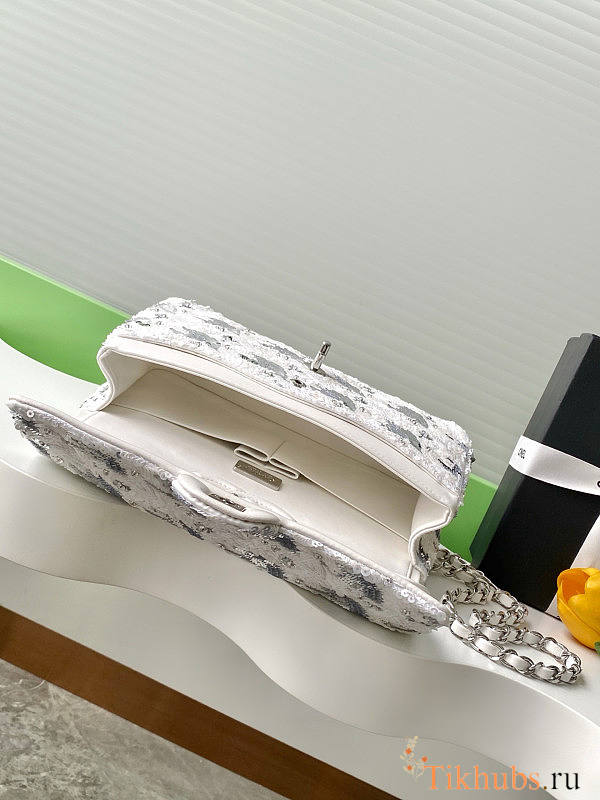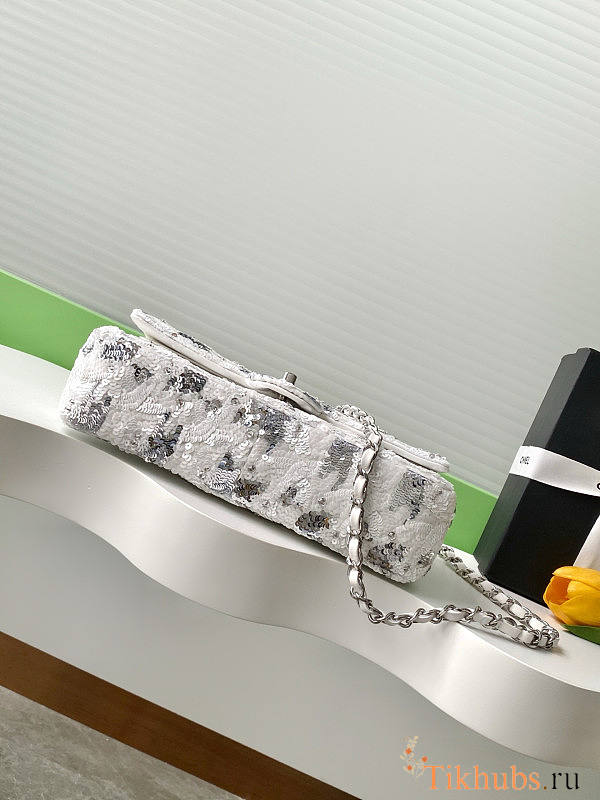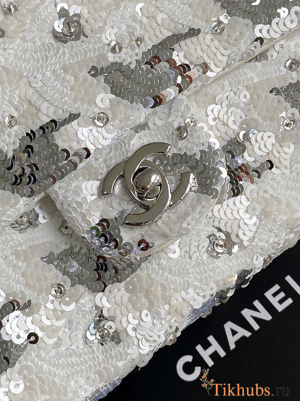 Chanel Flap Bag Satin Sequins Silver 25.5cm