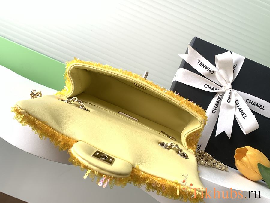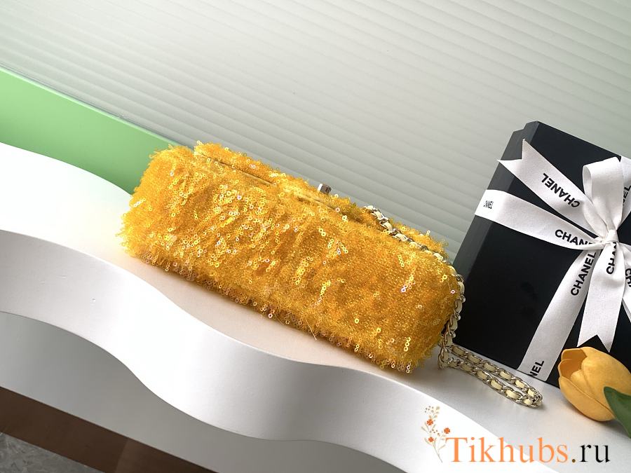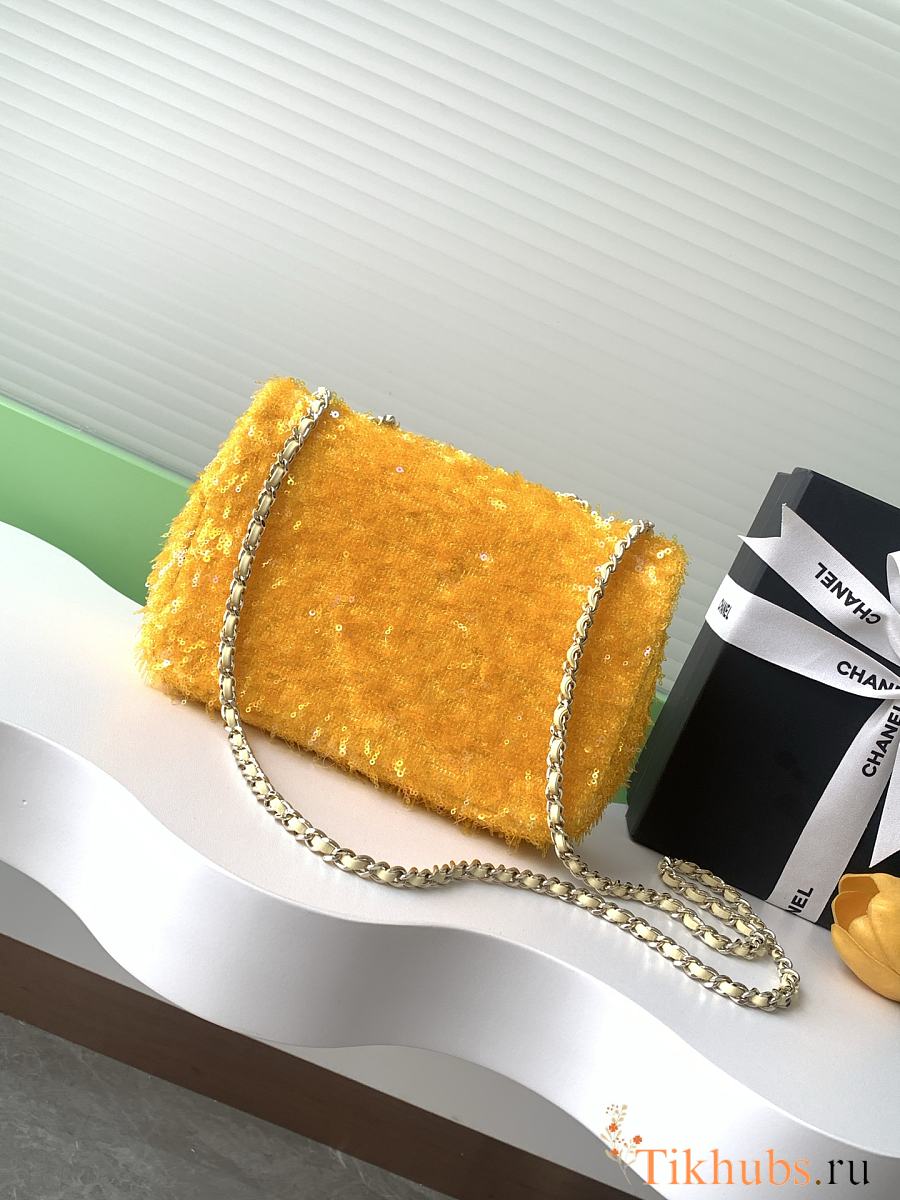 Chanel Flap Bag Sequins Yellow Gold 21x14x8cm