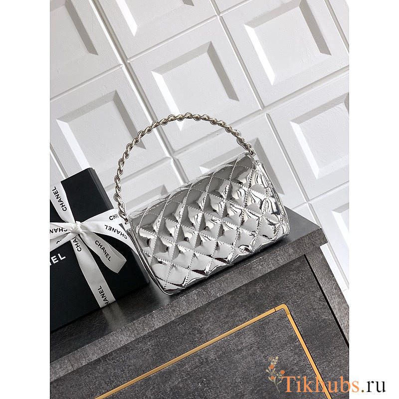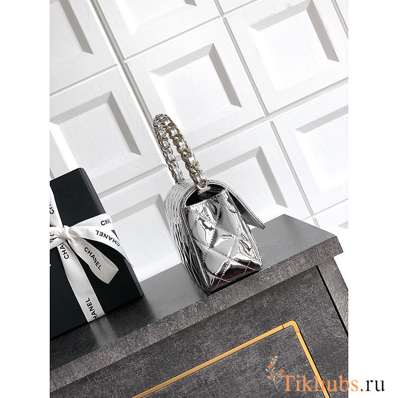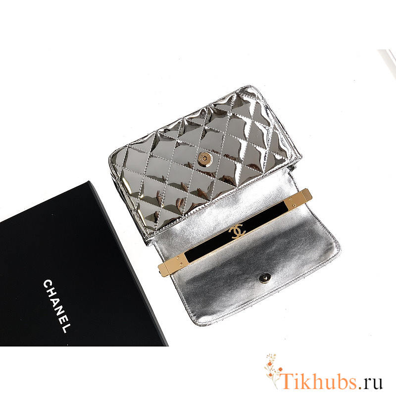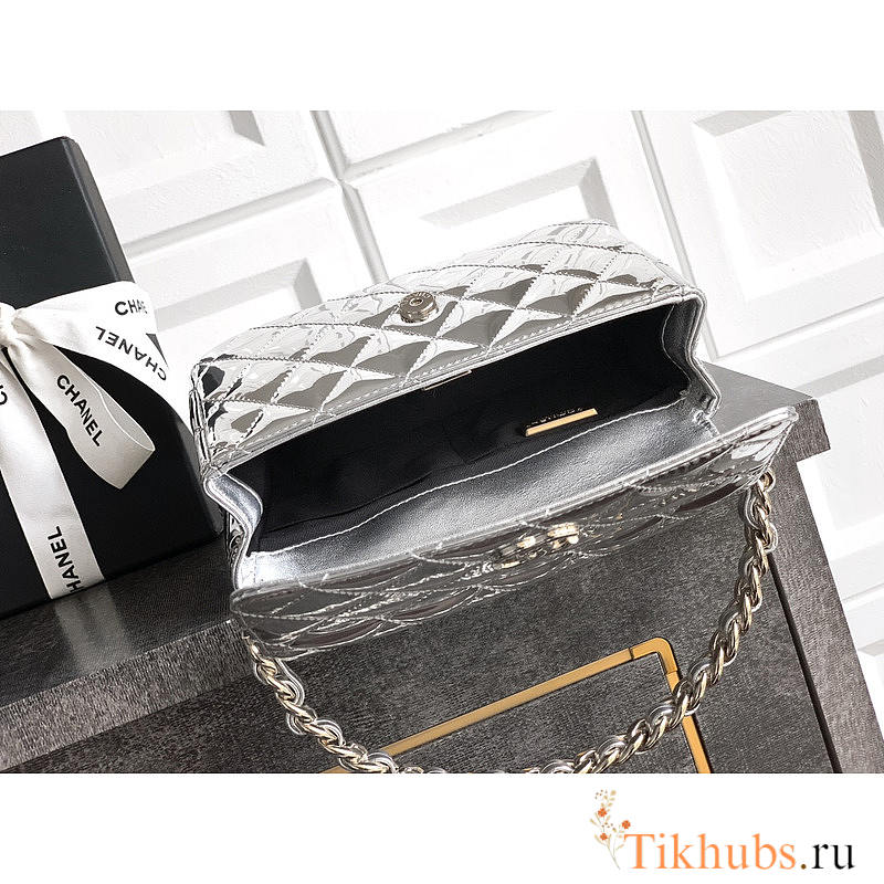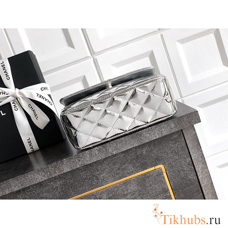 Chanel Flap Bag Shiny Silver 18.5x10.5x8cm