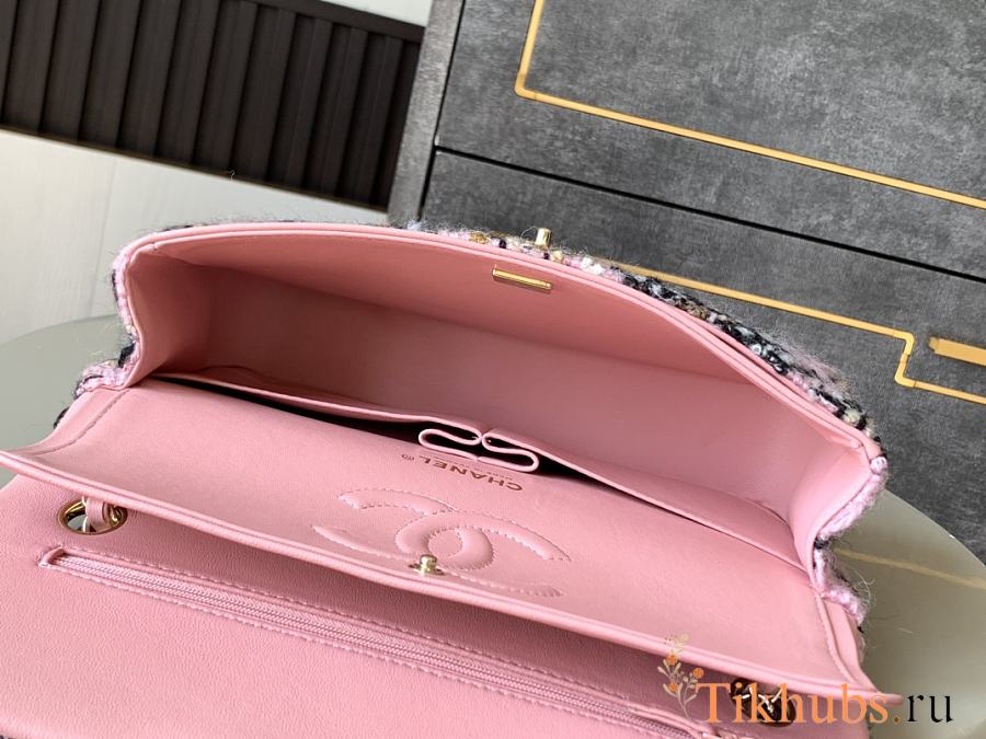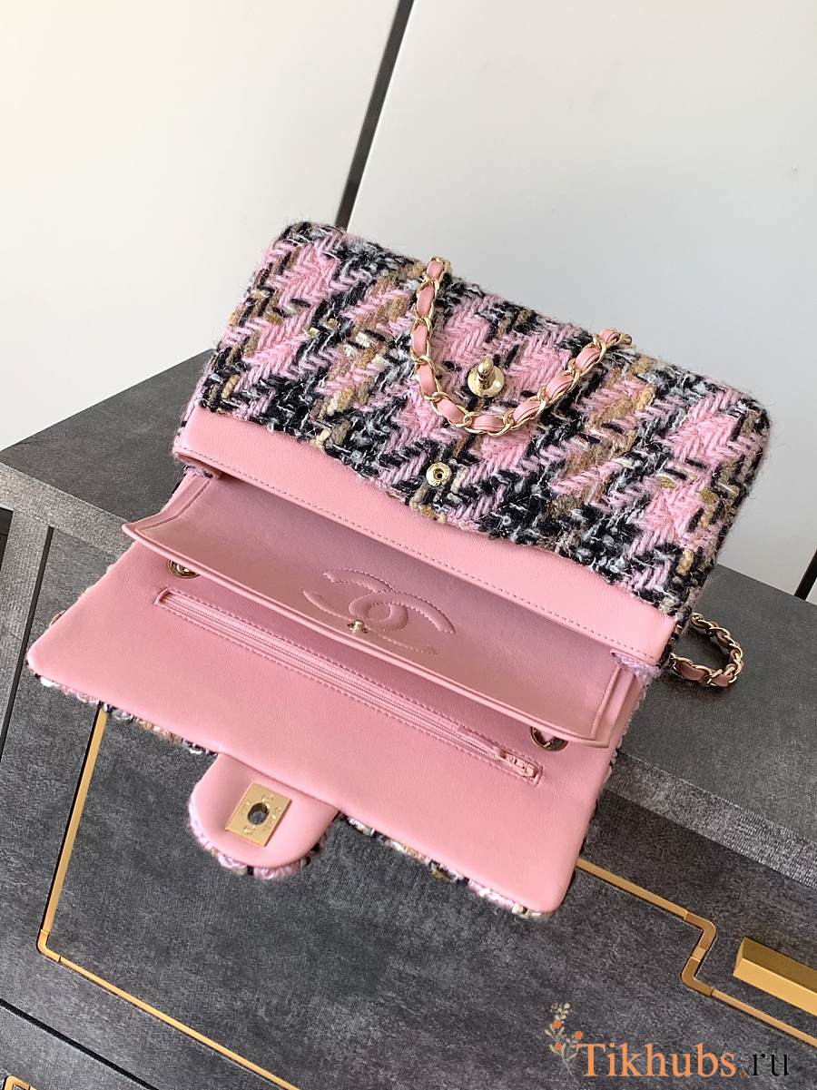 Chanel Flap Bag Tweed Gold Pink Black Beige 25cm