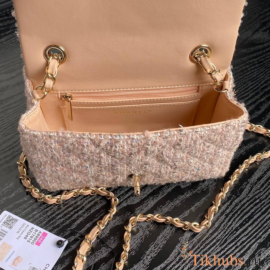 Chanel Flap Bag Tweed Light Yellow 20cm