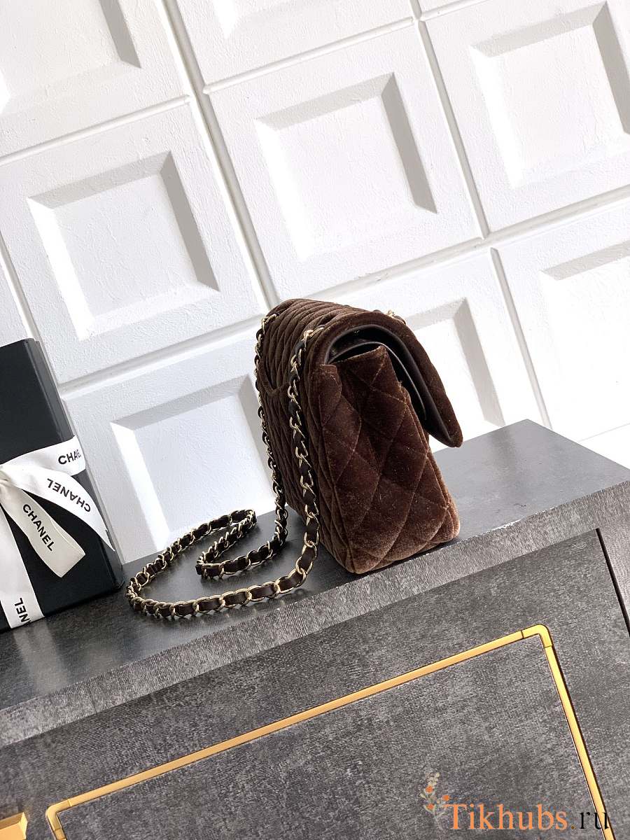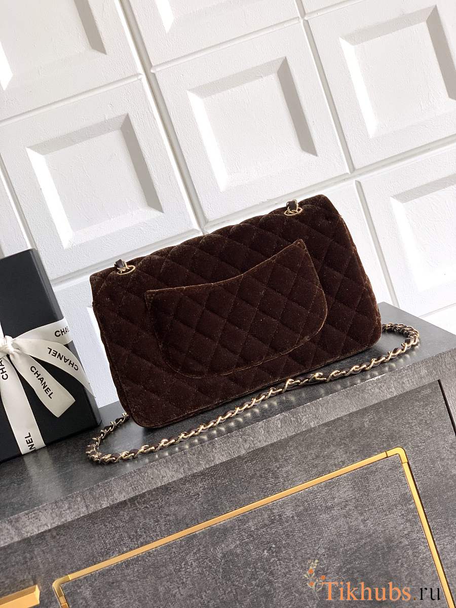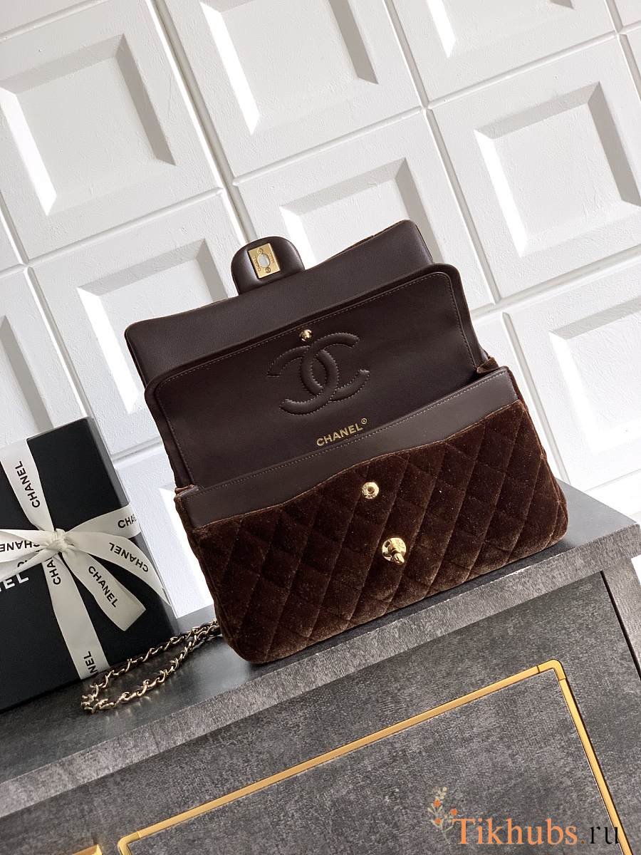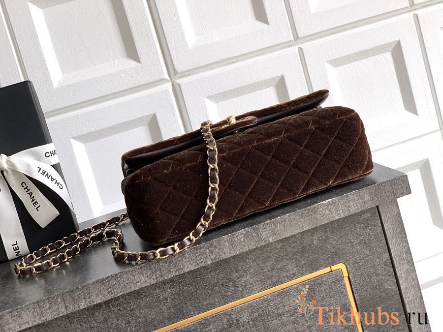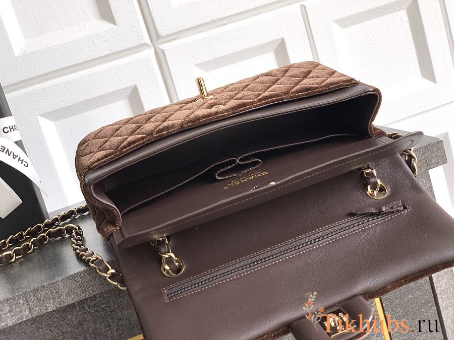 Chanel Flap Bag Velvet Gold Dark Brown 25cm