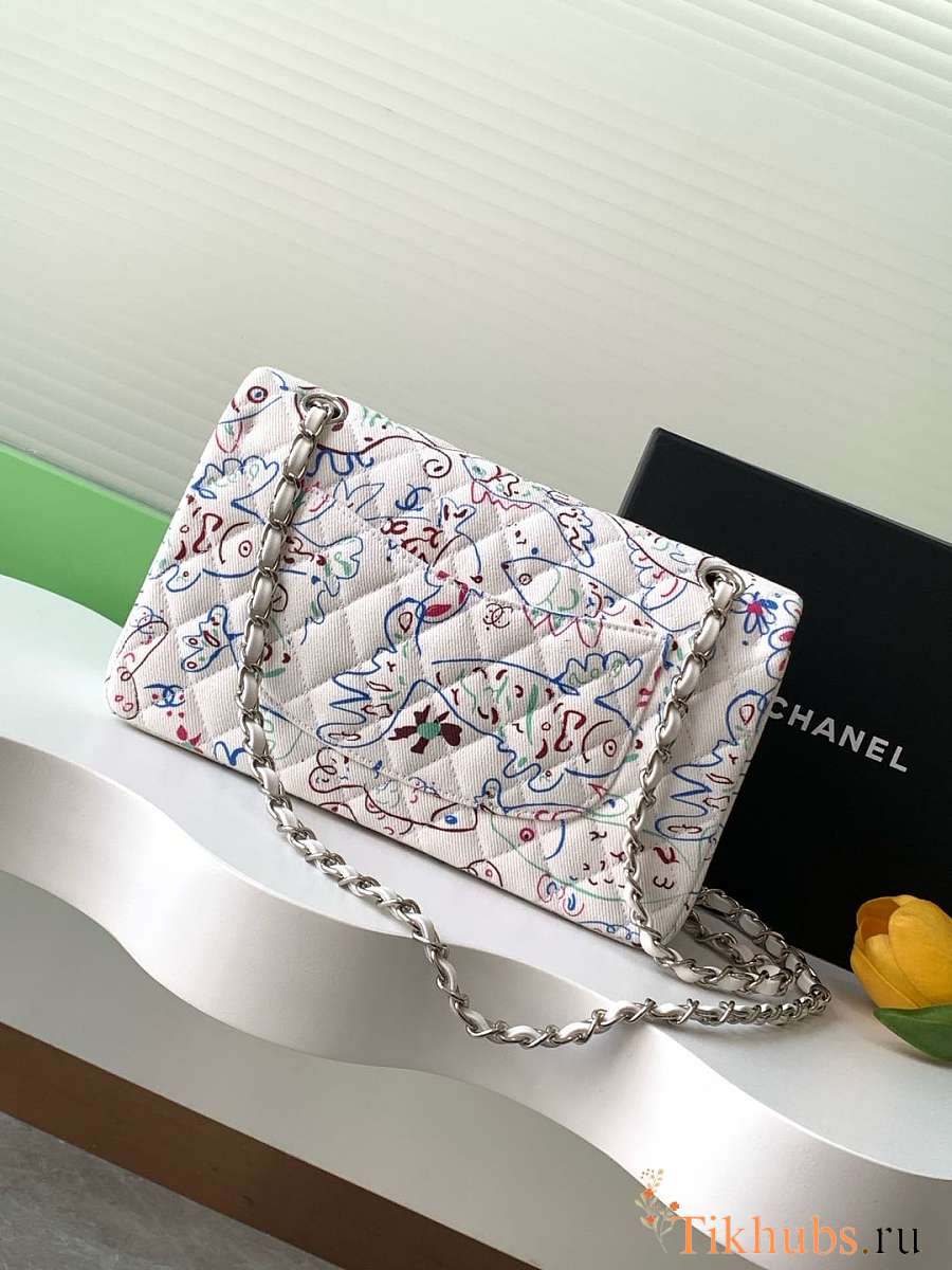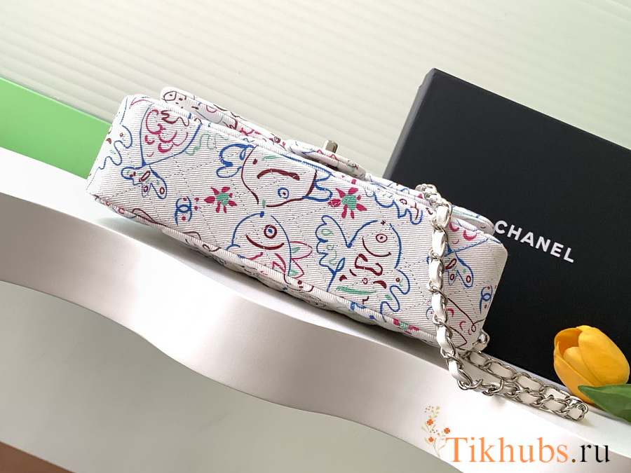 Chanel Medium Flap Bag White Caviar Siver Hardware 25cm