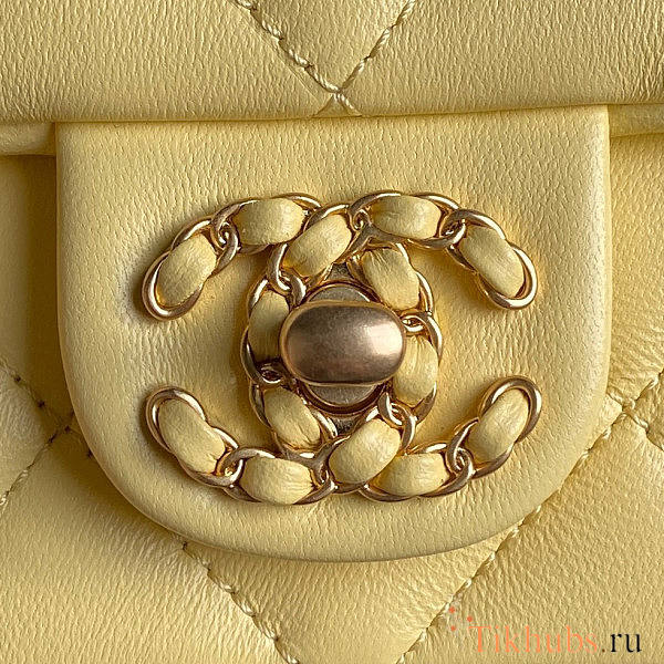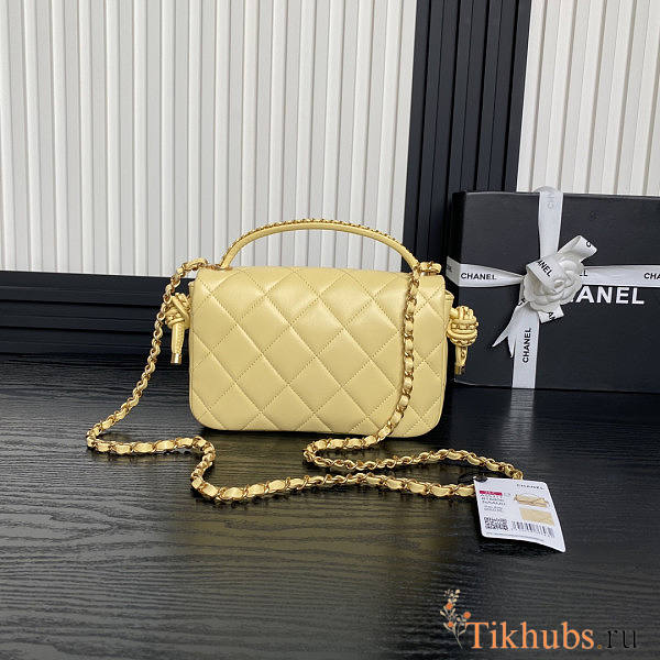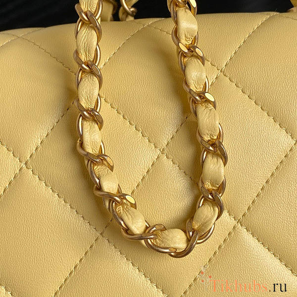 Chanel Flap Bag With Top Handle Yellow 22x23.5x6cm