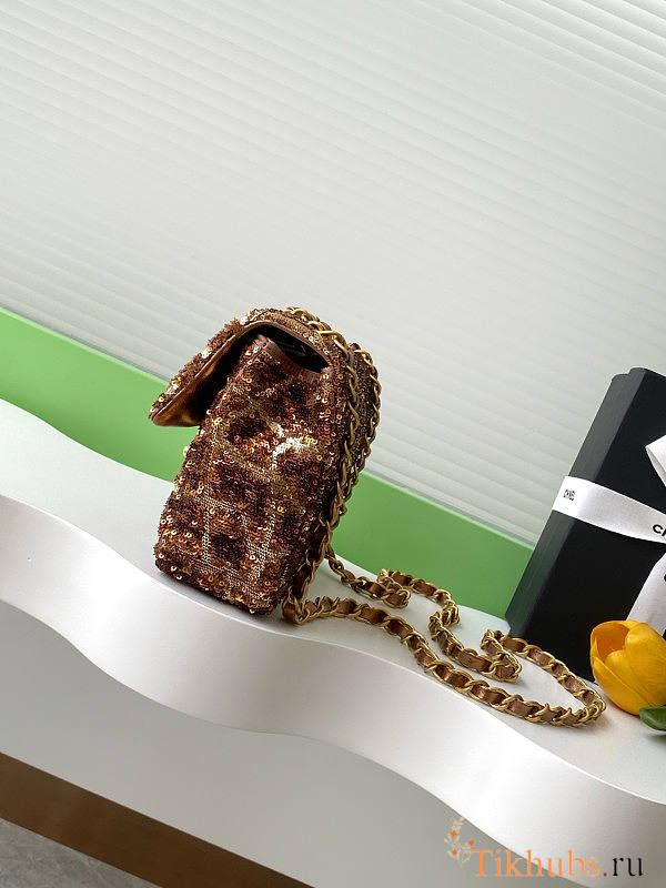 Chanel Flap Bag Yellow Sequins 21x14x8cm